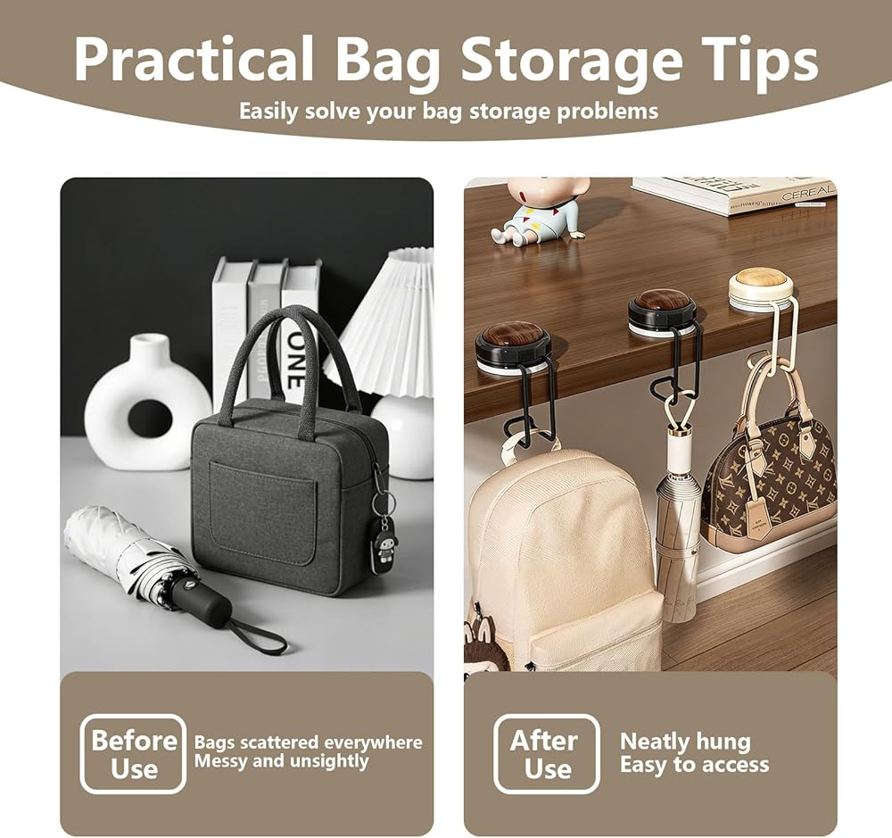 【عبوة قيمة وقدرة على التكيف على نطاق واسع】سوف تحصل على خطافين متعددي الأغراض يعملان بمثابة خطاف محفظة طاولة متعدد الاستخدامات لتلبية الاحتياجات المختلفة. مناسب للأسطح الملساء، يوفر حامل الحقيبة هذا للطاولة حلول تخزين مرنة، سواء للاستخدام اليومي في المنزل أو أثناء السفر، مما يوفر قيمة رائعة مقابل المال.