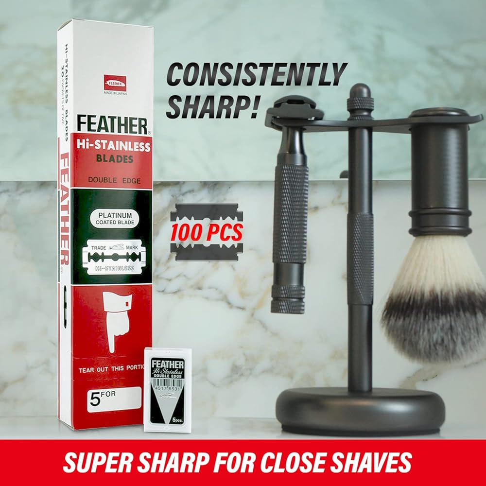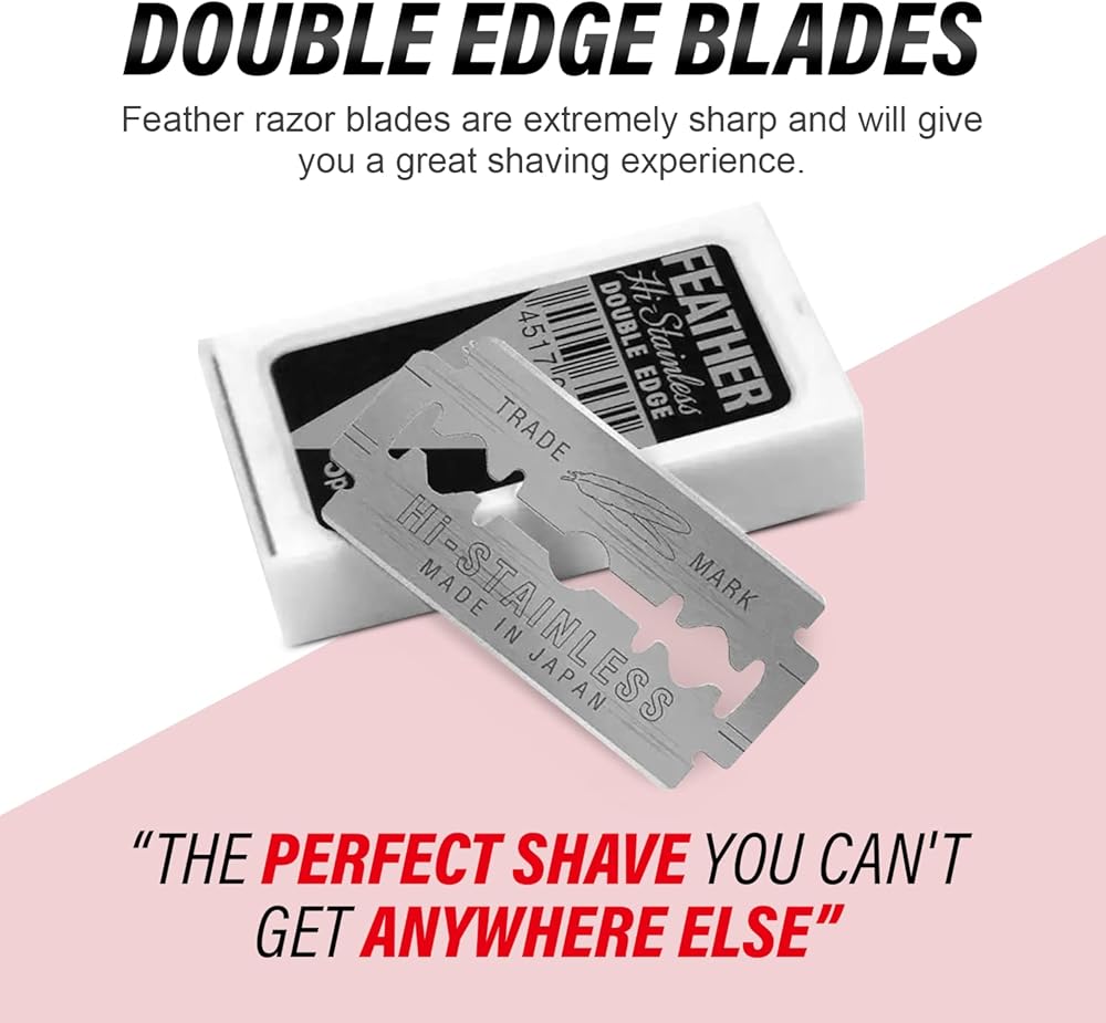 عدد واحد من شفرات الحلاقة مزدوجة الحواف؛ تتميز شفرات الحلاقة للرجال لدينا بعدد مائة من شفرات الحلاقة ذات الحافتين؛ شفرات حلاقة الريش حادة للغاية وستمنحك تجربة حلاقة رائعة