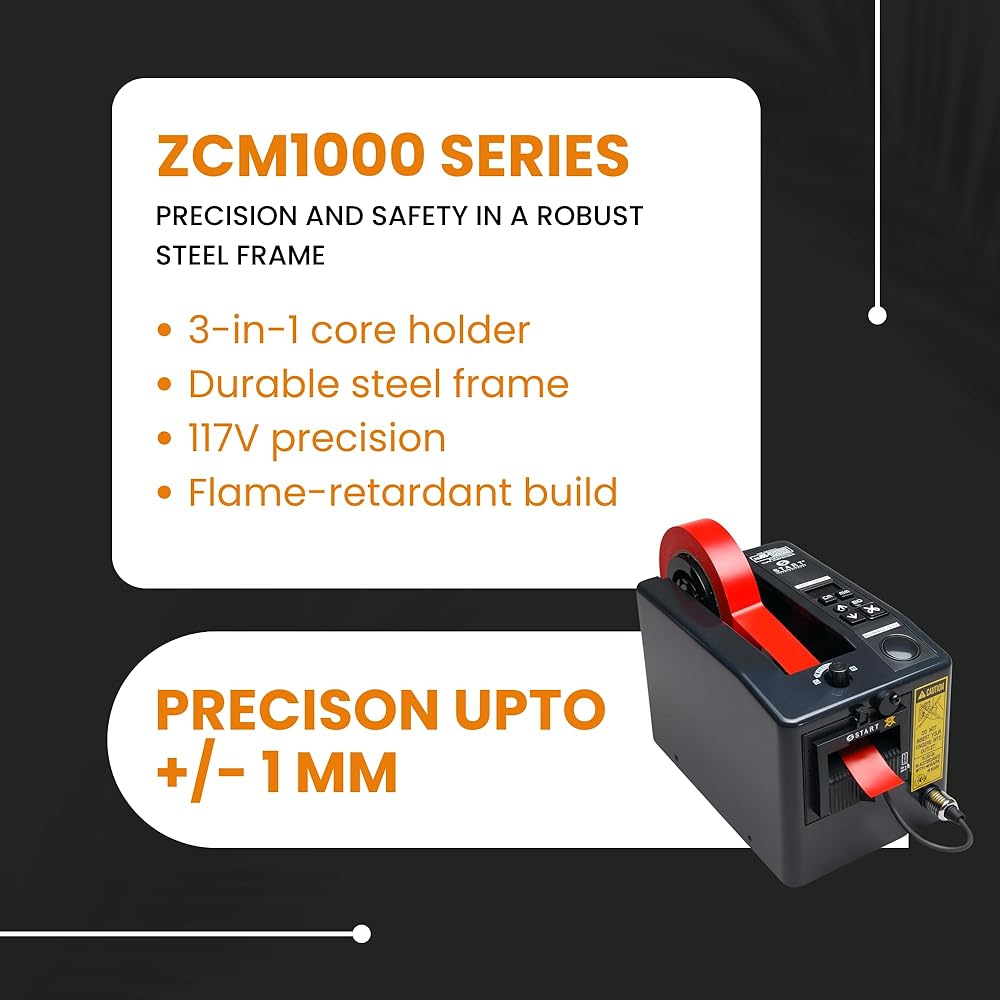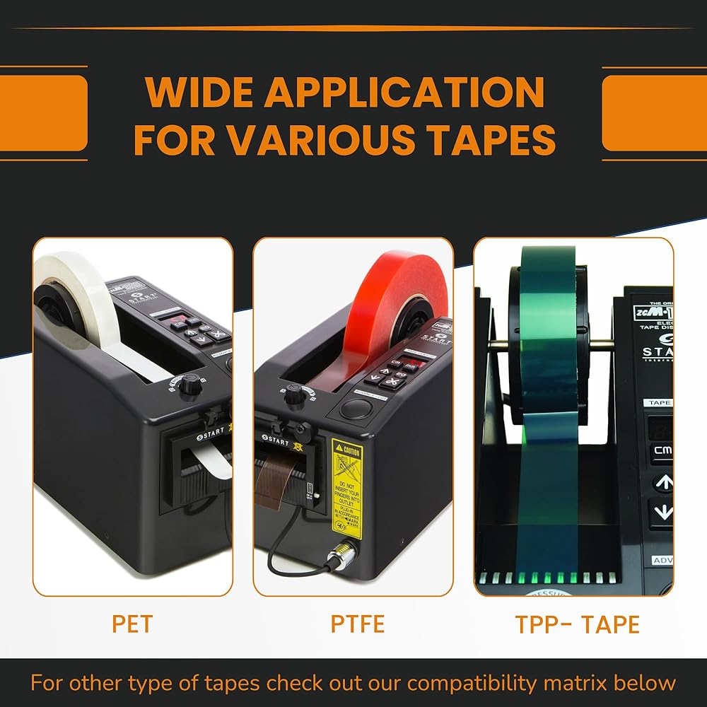 موزع الأشرطة الكهربائية START International ZCM1000 - آلة قطع الأشرطة اللاصقة الأوتوماتيكية مع بكرة تغذية قابلة للتعديل، إطار فولاذي، شاشة LED - للأشرطة مقاس 0.28 بوصة - 2 بوصة