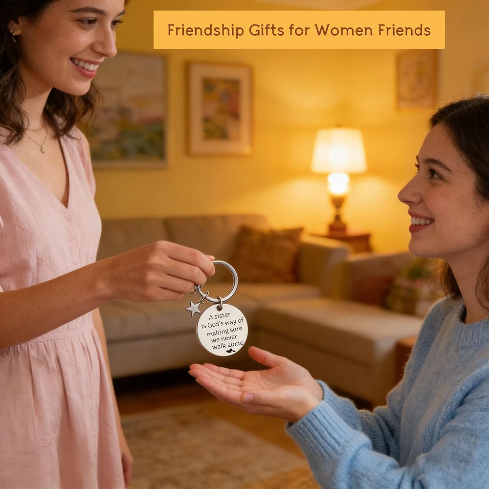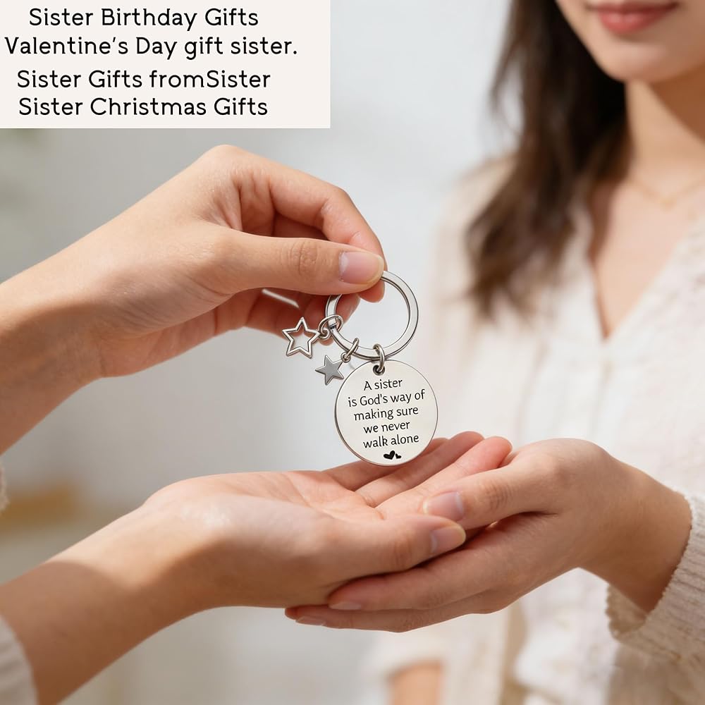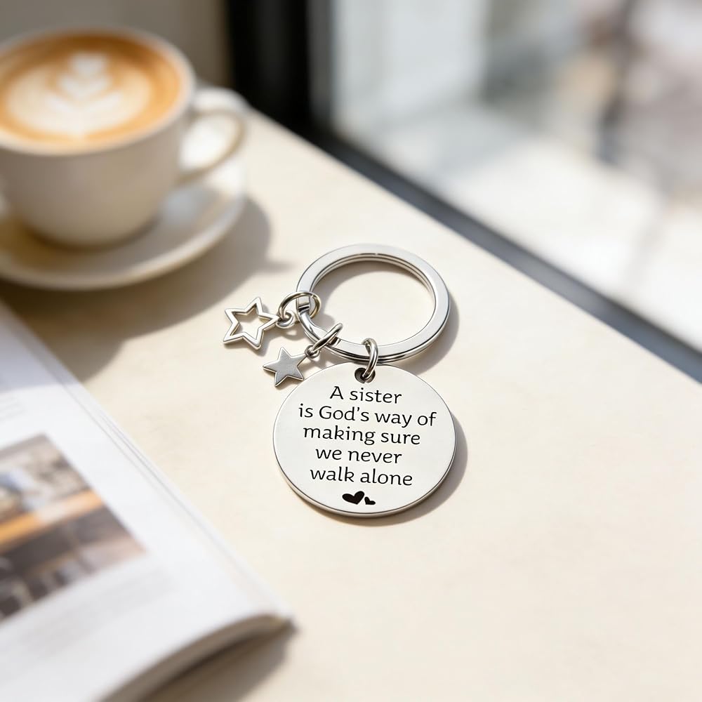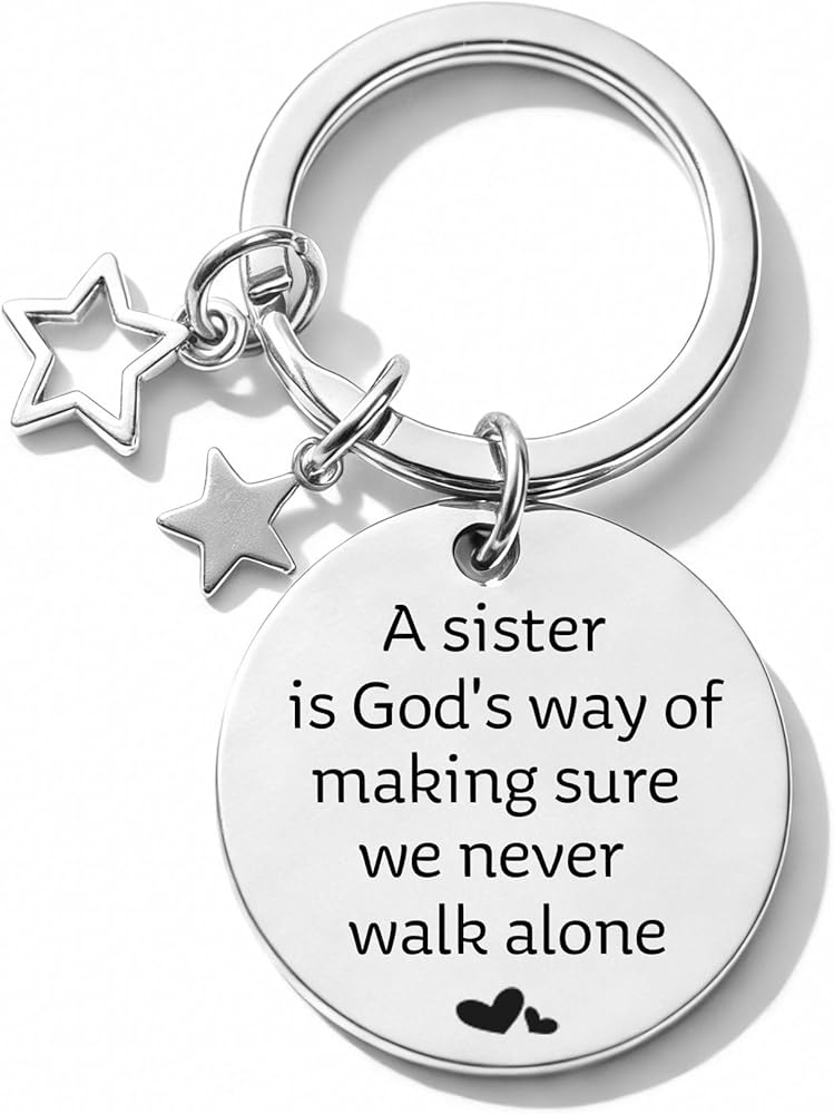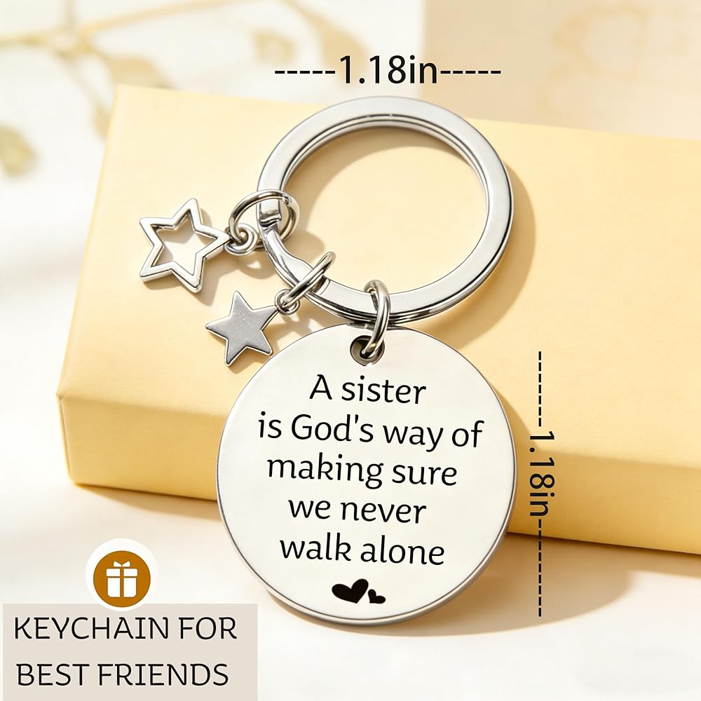 Sister & Best Friend Gifts: A heartfelt keychain for the sister who's also your best friend, engraved with ‘A Sister is God's Way of Making Sure We Never Walk Alone'