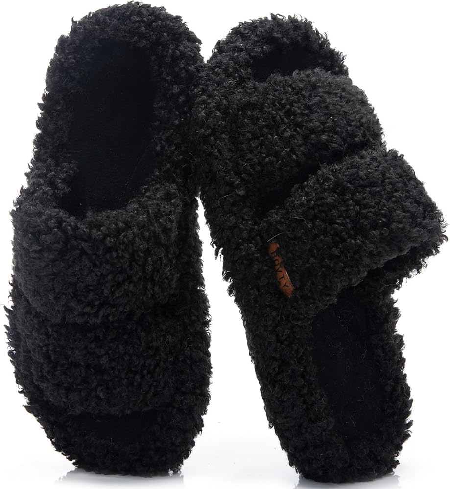 【Memory Foam & Targeted Arch Support】High-density memory foam footbed with built-in arch support gently cushions and stabilizes your feet, paired with soft faux fur uppers and linings. Delivers cloud-like comfort that adapts to your foot shape, reducing fatigue for all-day wear. Hand & machine washable for easy care.