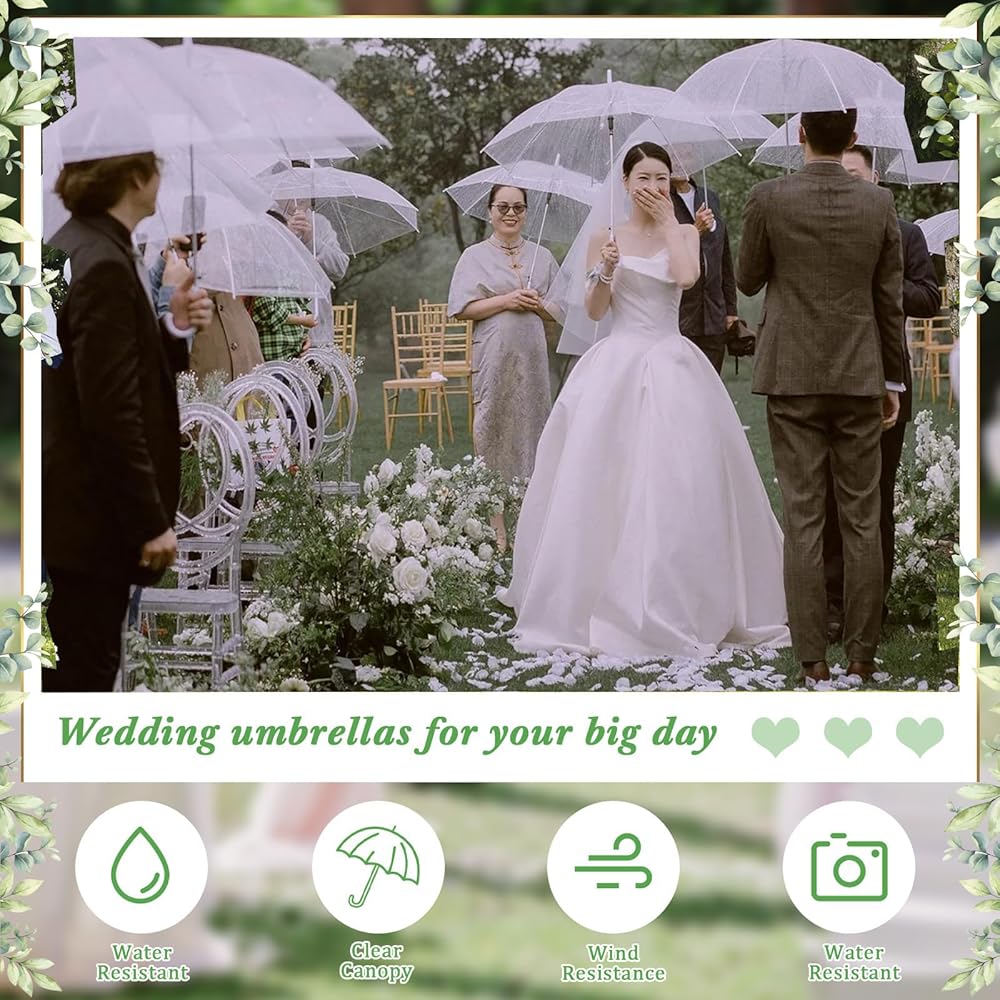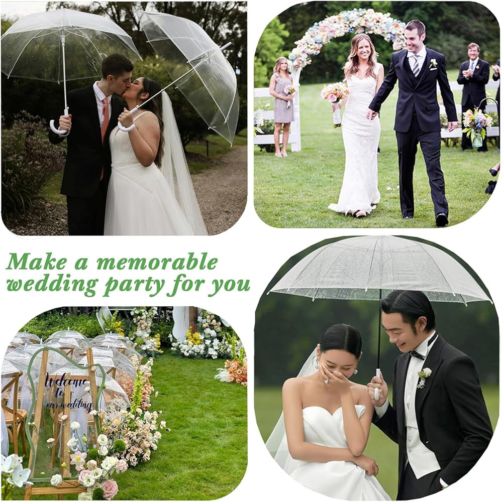 24 قطعة من مظلة الفقاعات الشفافة للزفاف مقاس 52 بوصة، مظلات عصا مقاومة للرياح على شكل قبة كبيرة، مظلات مطر شفافة عالية الوضوح، ثابتة ومتينة، سهلة التشغيل، مظلة شفافة كبيرة لحفلات زفاف العروس والعريس وحفلات الجولف في الهواء الطلق