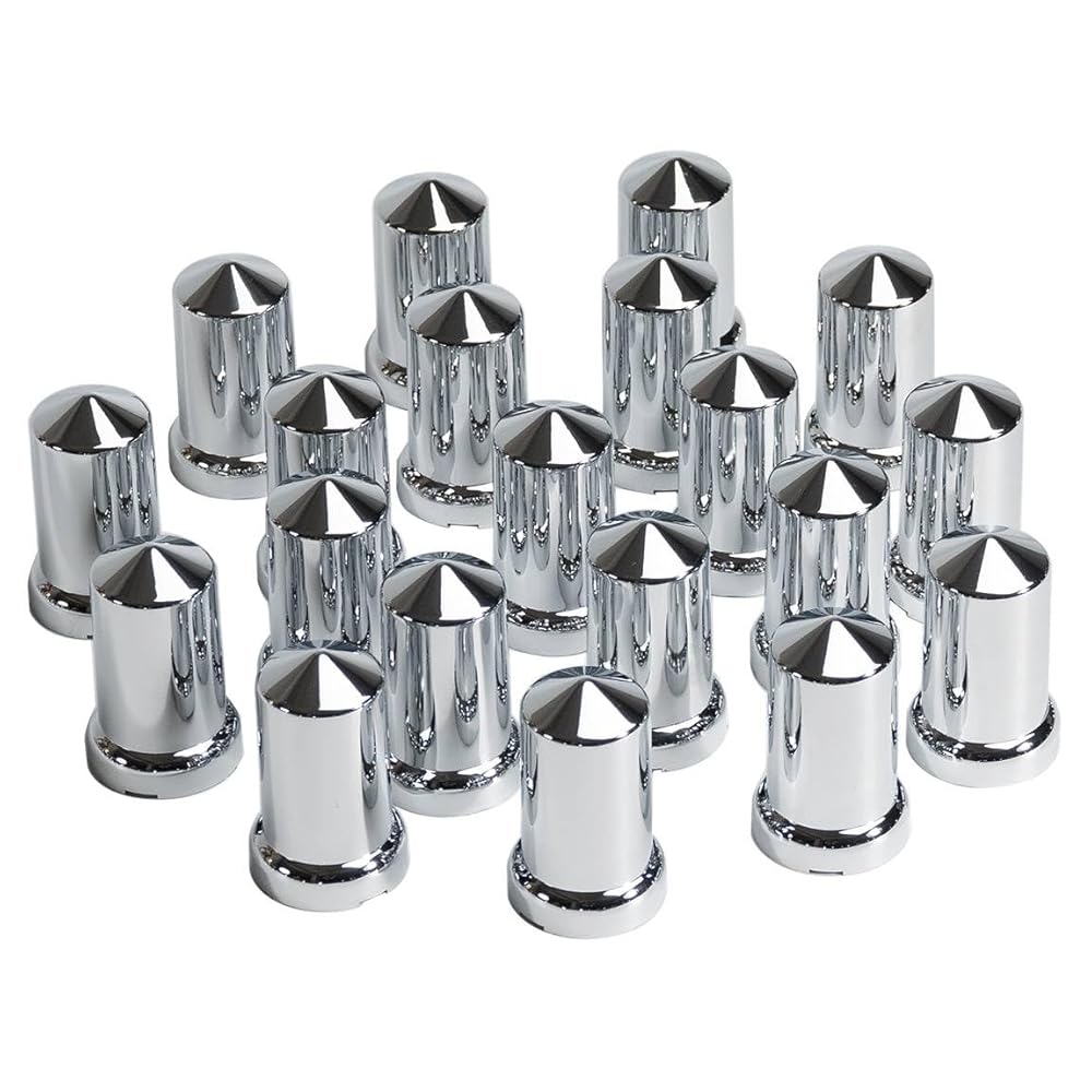 JESONN 20 PCS Bullet-Shaped 33mm Chrome ABS Plastic Lug Nut Covers Lugs with Flange Push on for Semi Trucks
