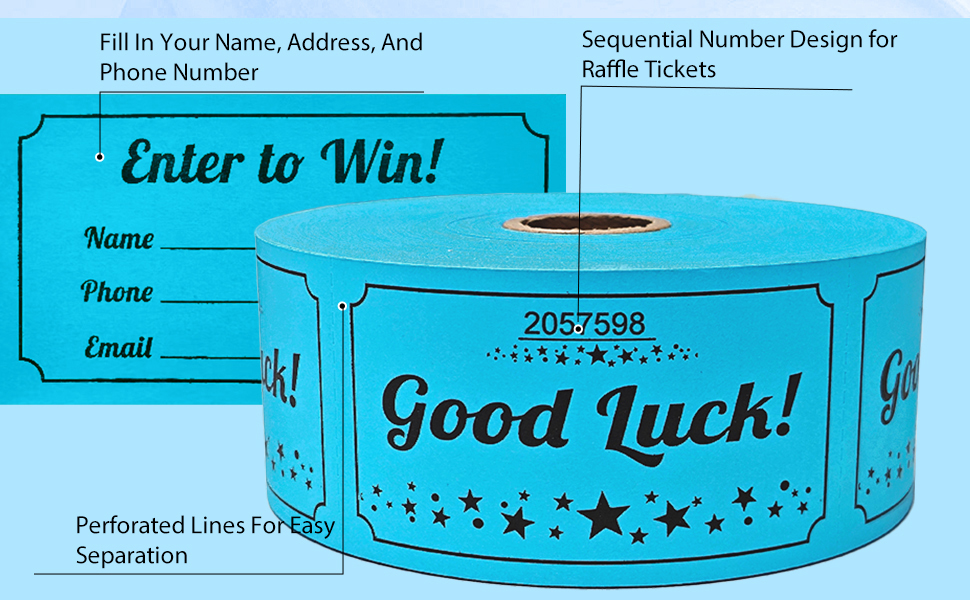 【حجم عملي مع تصميم حظ سعيد】: توفر هذه التذاكر مقاس 3.5 × 2 بوصة مساحة واسعة على الظهر لجمع الاسم والهاتف والبريد الإلكتروني، مما يجعل من السهل تتبع الإدخالات والمتابعة مع الفائزين. تتميز برسالة "حظ سعيد"، فهي تضيف لمسة من الطاقة الإيجابية إلى السحوبات وجمع التبرعات والمناسبات الأخرى.