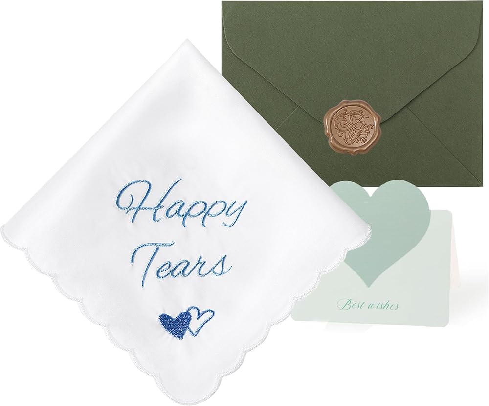Happy Tears Handkerchief - 1pcs Handkerchief, 1pcs Envelope Gift Box + Empty Greeting Card. Crafted from high-quality 60S dense cotton fabric, these wedding hanky are soft, and highly absorbent against skin, able to quickly soak up moisture without feeling overly damp.