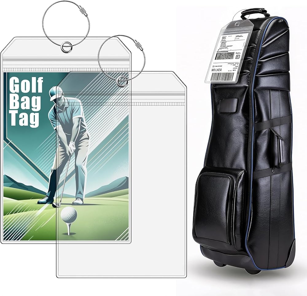 Ship With Confidence – Your Golf Clubs Deserve Better Protection Shipping your golf clubs shouldn't feel like a gamble. Whether you're using Ship Sticks, FedEx, or UPS, a lost or damaged shipping label can mean delays, stress, or even missing clubs when you arrive. That's exactly why this Extra Large Golf Bag Shipping Label Holder was designed—to give you total peace of mind from pickup to delivery. Unlike small, flimsy holders that force you to fold labels over and over, our 9” x 6” oversized design keeps your shipping label flat, visible, and easy to scan. Couriers can simply scan and go, reducing handling time and minimizing the risk of lost or unreadable barcodes. No peeling tape. No soggy paper. No last-minute panic. Crafted from thick, rigid waterproof PVC, this holder protects your documents from rain, rough handling, and long-distance travel—even on international trips with multiple customs forms. The zip-seal closure keeps everything securely inside, while the reinforced metal grommet prevents tearing where cheaper tags often fail. Each holder comes with a strong stainless steel braided cable that attaches firmly to your golf bag, luggage handle, or travel case. Built to be reusable trip after trip, it's trusted by golfers, frequent travelers, and professionals who ship valuable equipment regularly. From golf bags and ski bags to cruise luggage and oversized suitcases, this label holder is a simple upgrade that makes a big difference. Because when you've invested in your gear—and your trip—the last thing you should worry about is whether your label will make it