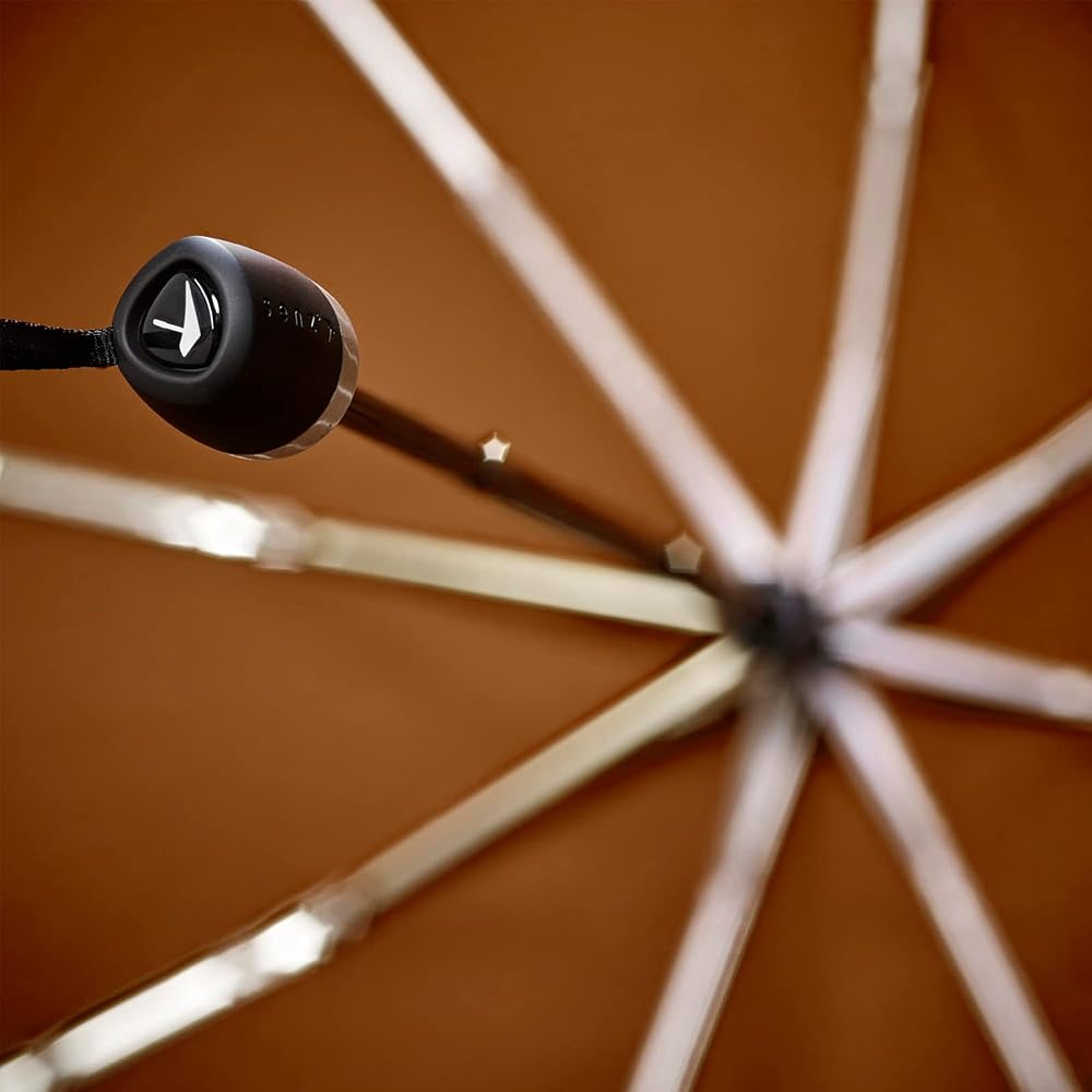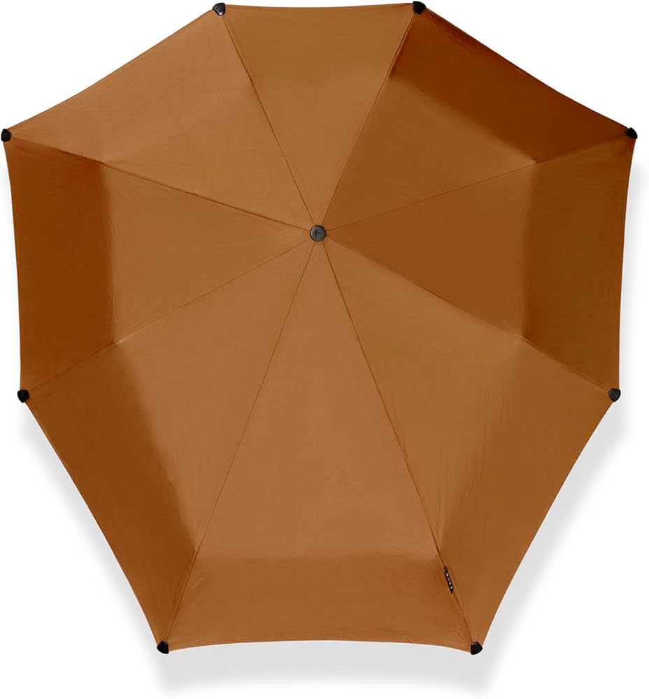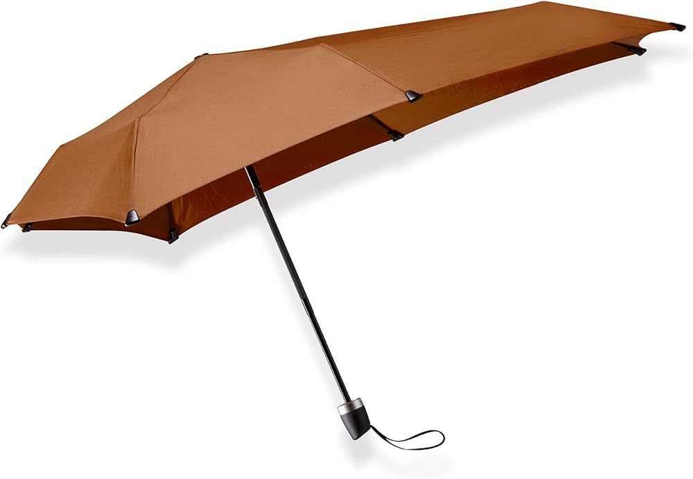 This award-winning senz° Mini Manual Foldable Umbrella is windproof, lightweight and easy to hold. Features a unique shape that provides perfect visibility and a canopy with fast dry fabric and UV protection UPF50+. Crafted with an aerodynamic shape that can resist wind up to 80 km/h without inverting. It has an ergonomic handle with manual open/close mechanism. To protect your eyes and those of the people around you, this umbrella has a built-in Eyesaver on each tip. To open and close the umbrella, keep the long side down when you open and close it. Then point the short side of the umbrella towards the wind, especially during windy or stormy weather. Carefully open the strap and gently shake your umbrella prior to opening to ensure the ribs are free. Then slide the runner upwards until it clicks into place. To close the umbrella, pull the runner downwards and close the shaft by pushing simultaneously at both sides. To hold the umbrella, hold it with the short side facing the wind or hold it on your shoulders if the wind is at your back. To fold the umbrella, make sure the senz° label of the canopy is on top so you get a flap on both sides. Then fold the flaps over each other away from the label (the flap with the Velcro strap on top). Lastly, roll the Velcro strap around your senz° and put your umbrella in its sleeve. To keep the umbrella in good condition, leave your umbrella open to let it dry fully before folding and storing. It is best to clean your umbrella with water, without soap or other cleaning products. This can easily be done in the bathtub or shower. The umbrella measures 11.10 (folded shaft) / 22.36 (unfolded shaft) x 35.82 x 35.82 inches and weighs 0.71 lbs. Color: sudan brown. Includes a stylish sleeve. Original Dutch design.