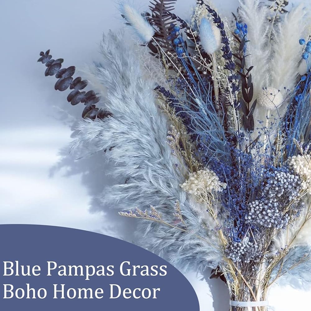 【زهرة مجففة على الطراز البوهيمي للمزهرية】: باقة عشب البامبا الأنيقة والجميلة تخلق جوًا دافئًا وطبيعيًا مع لون أزرق فريد وجميل يملأ غرفتك بسهولة بجمال الطبيعة ويتناسق بسهولة مع الديكور البوهيمي وبيت المزرعة والديكور المعاصر.