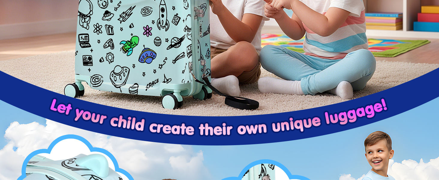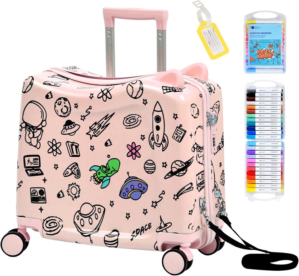 【غطاء متين من مادة أكريلونتريل بوتادين ستايرين + البولي كربونات】 مصنوعة من مادة أكريلونتريل بوتادين ستايرين + البولي كربونات القوية، حقيبة الركوب هذه للأطفال خفيفة الوزن لكنها متينة بما يكفي للتعامل مع الصدمات والسقوط، مما يحافظ على ممتلكات طفلك آمنة في كل رحلة.