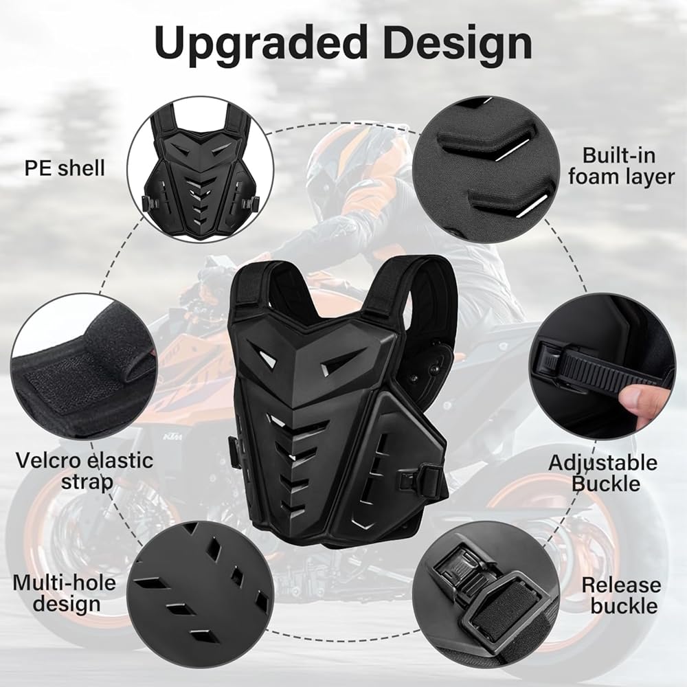 سترة واقية للجسم خفيفة الوزن درع الصدر للدراجات النارية، حماية خلفية للرجال قابلة للتعديل لحماية دائمة من الصدمات في موتوكروس، ركوب الدراجات النارية على الطرق، التزلج وغيرها من الرياضات
