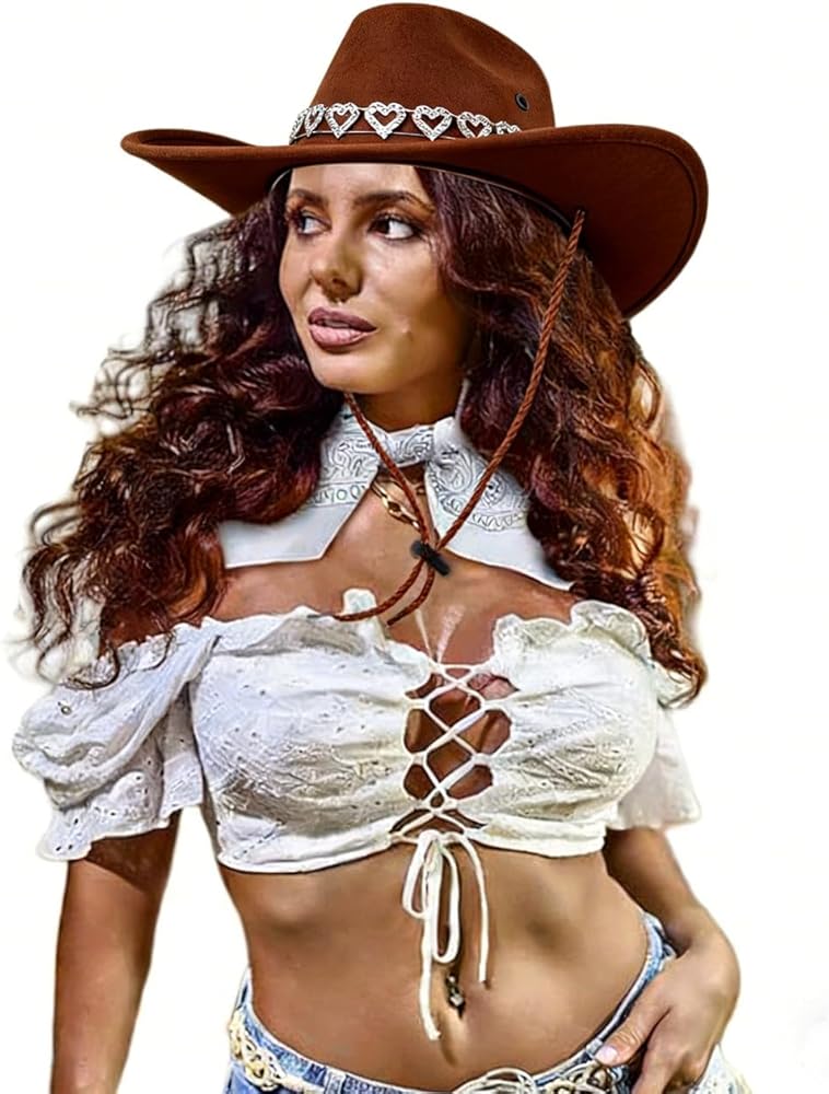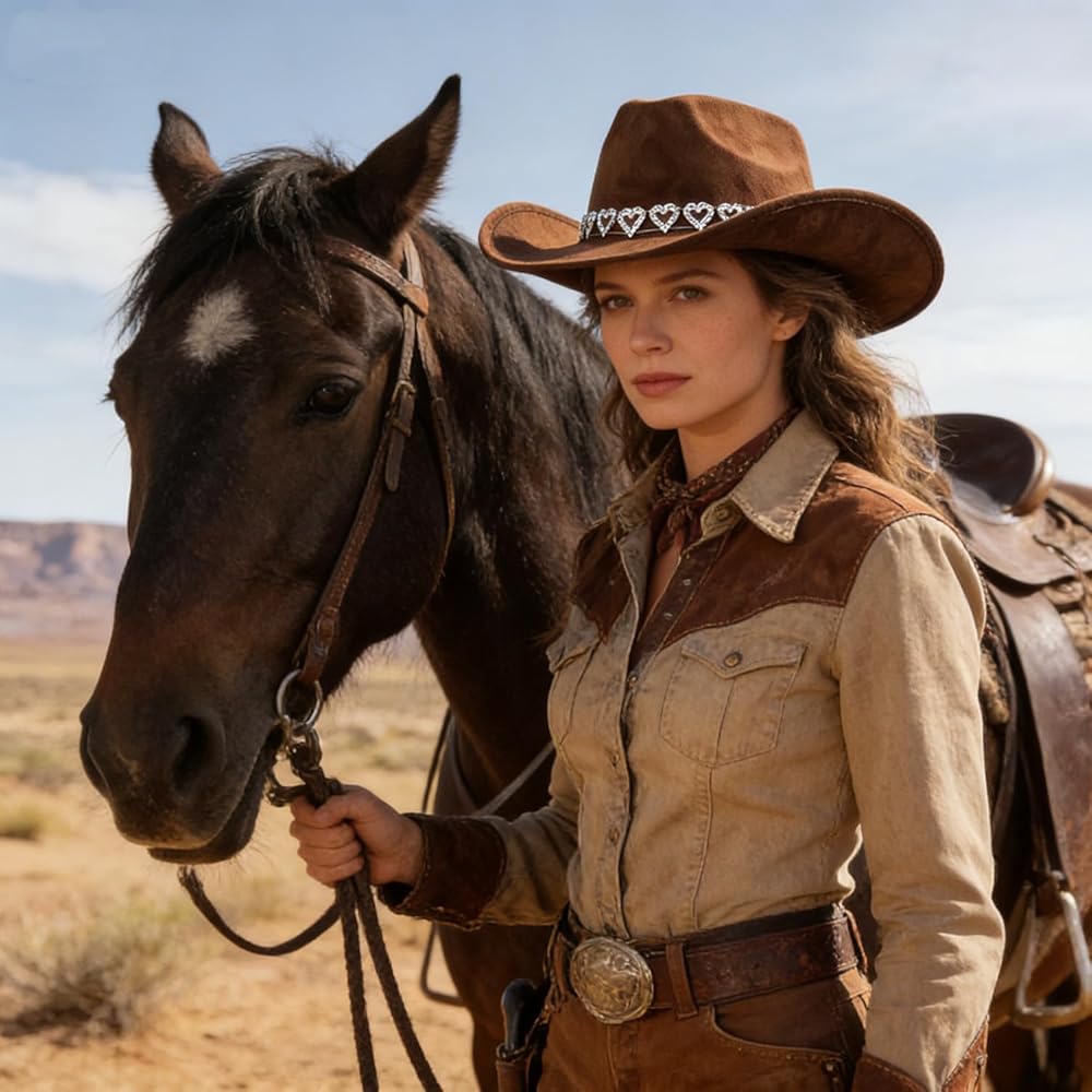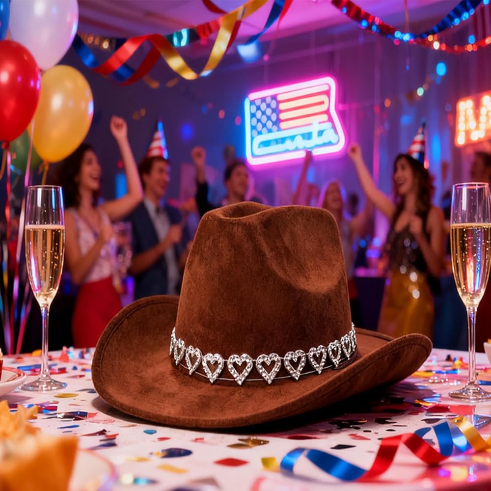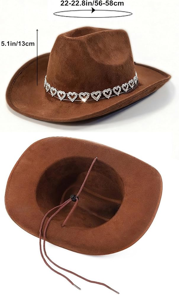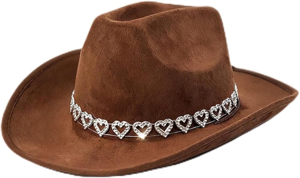 - Unique glitter hearts rhinestone ornament design, make this hat more special and chic, close to western style.
