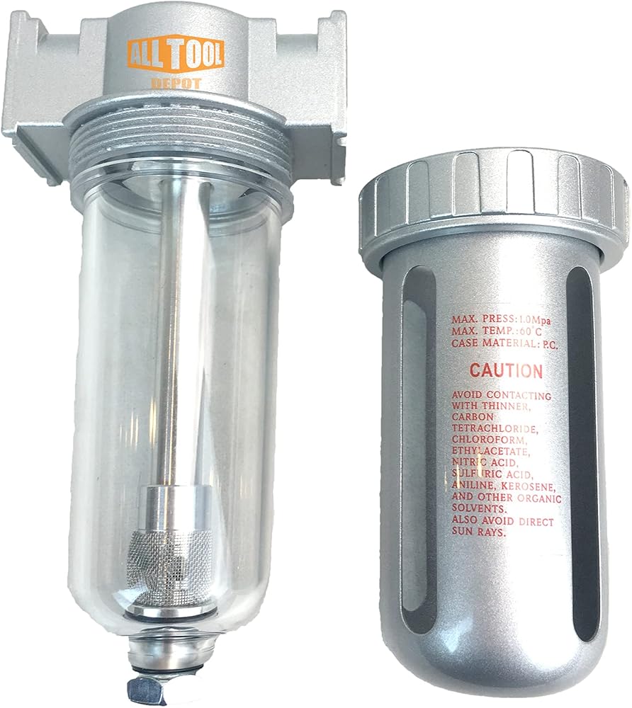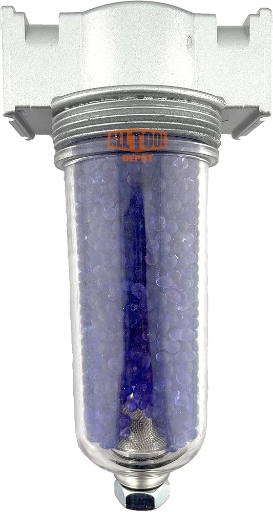 يرجى ملاحظة: 1/2 بوصة NPT يقيس 0.850 بوصة قطر الخيط الخارجي بالبوصة. مجفف هواء مجفف متوسط التحمل مقاس 1/2 بوصة مزود بوعاء بولي وزجاج مرئي.