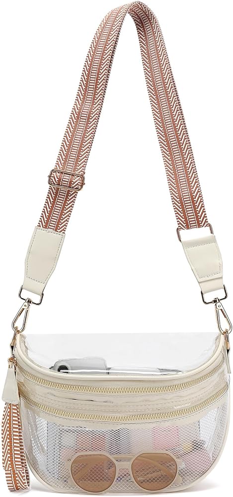 【حقيبة شفافة أنيقة】تتميز حقيبة بوم الاستاد الشفافة هذه بسحاب ذهبي مزدوج متطور. إنها محفظة مثالية للاستخدام في مناسبات الاستاد أو التسوق أو السفر أو الحفلات أو العطلات أو أي مناسبة يومية. سواء كنت سيدة مكتب أو طالبة أو مسافرة، فسوف تحب هذه المحفظة الشفافة.