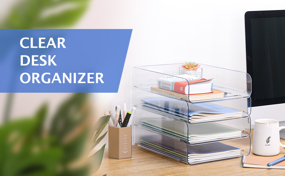 منظم صينية مكتب أنيق وقوي: صينية الحروف الورقية الخاصة بنا مصنوعة من مادة PET السميكة الممتازة، والتي تتميز بالمتانة والقوية للاستخدام لفترة طويلة. يوفر منظم المكتب الشفاف والأنيق مظهرًا نظيفًا لمنزلك ومكتبك