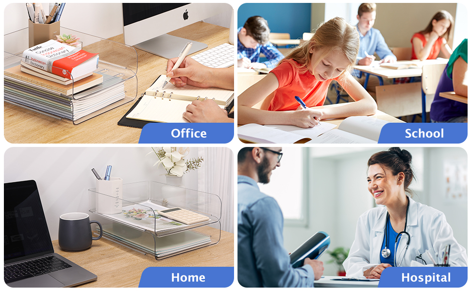 توفير المساحة: يمكن استخدام كل صينية بشكل فردي أو مكدسة عموديًا لزيادة مساحة المكتب إلى أقصى حد. يتيح لك التصميم المعياري القابل للتكديس تخصيص الإعداد الخاص بك بناءً على احتياجاتك - وهو مثالي لتنظيم الرسائل والفواتير والمستندات مقاس A4 والمجلدات والدفاتر واللوازم المكتبية دون شغل مساحة غير ضرورية.