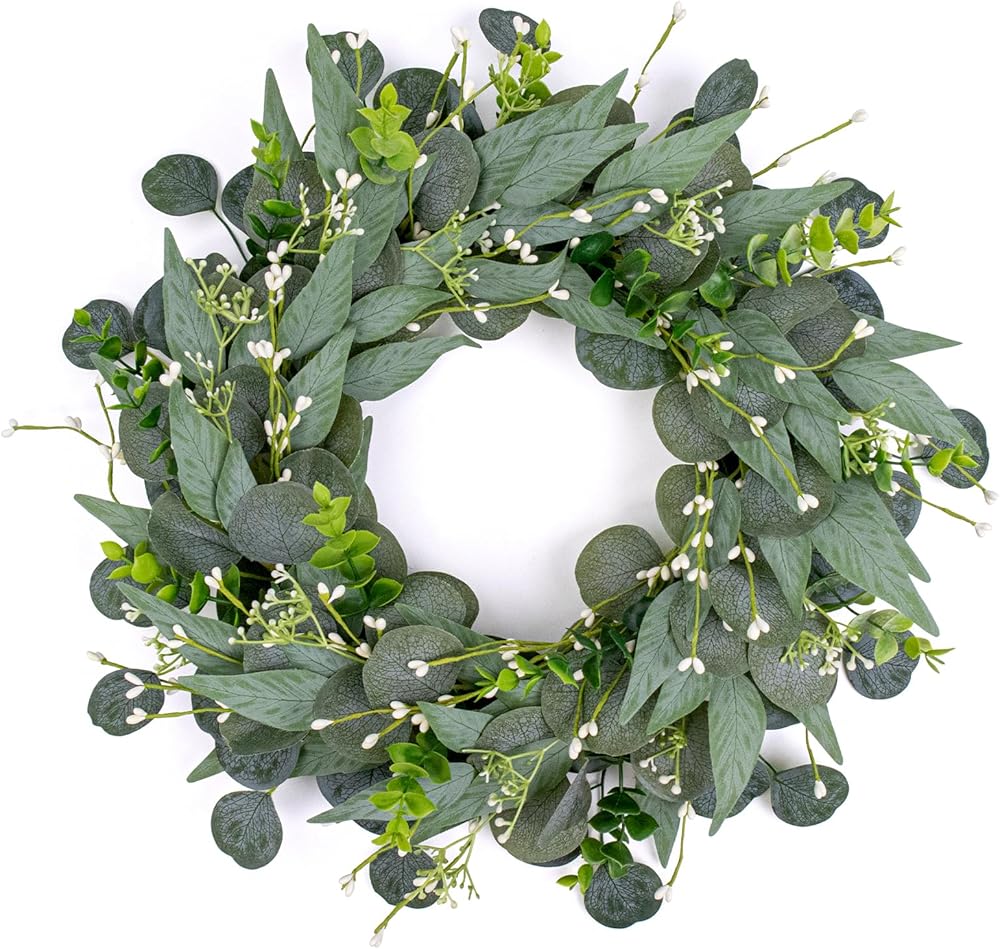 【Effortless and Thoughtful】: Handcrafted from high-quality faux materials, this eucalyptus wreath requires no maintenance in daily life. It eliminates the hassle of frequent decor changes, allowing a warm, natural ambiance to linger in your home. It's the perfect decorative choice for busy lifestyles.
