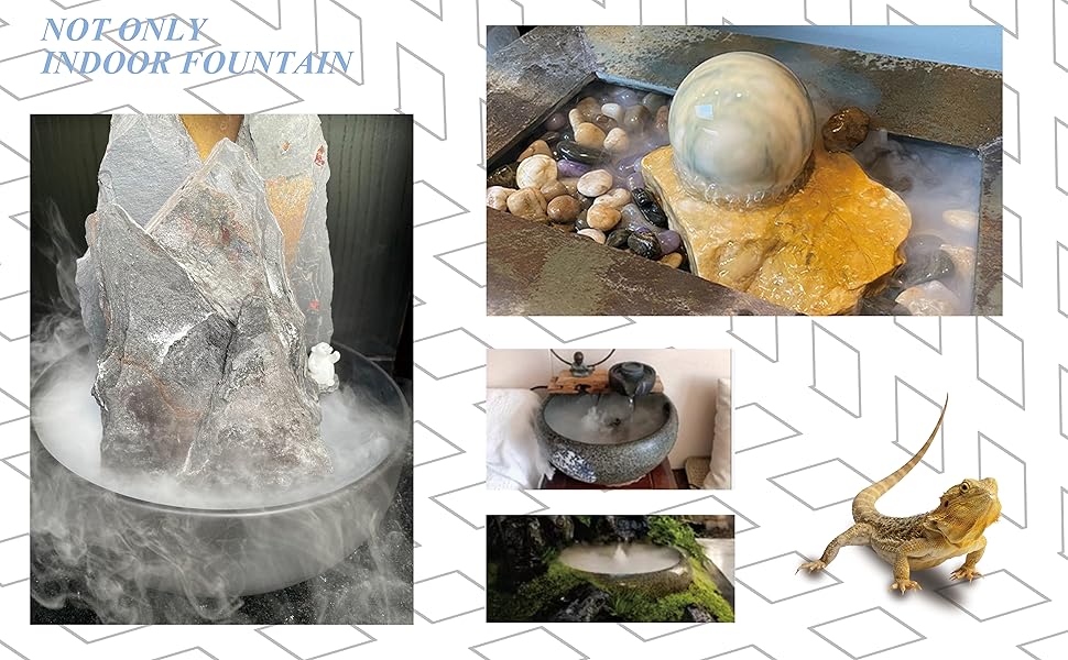 【ديكور حفلة الهالوين】: يمكن لصانع الرذاذ هذا إضافة المزيد من تأثيرات الرذاذ الرائعة وتأثيرات الإضاءة الأكثر إشراقًا وسحرًا إلى النافورة الداخلية الخاصة بك.