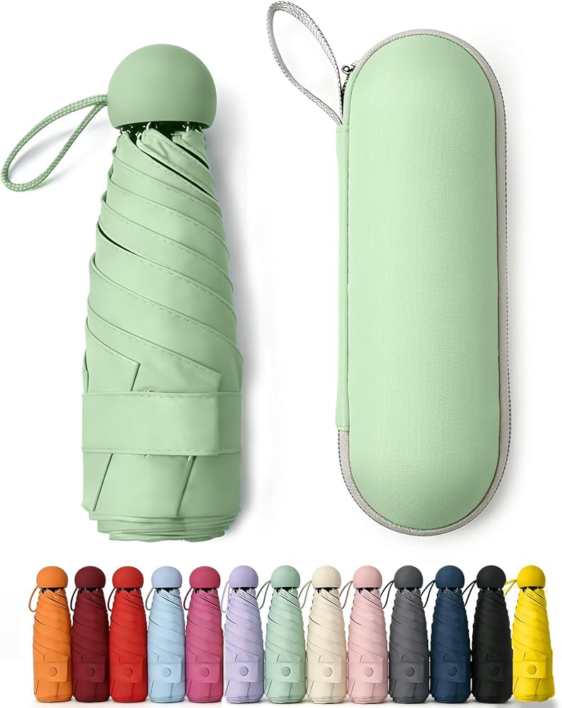 ☔ صغيرة الحجم للغاية وبحجم الجيب - يبلغ قياسها 8.3 بوصة × 3.1 بوصة × 2.4 بوصة فقط عند طيها، هذه المظلة الصغيرة تناسب بسهولة جيبك أو حقيبتك أو حقيبة ظهرك. تزن 9.5 أونصة فقط وتتميز بحزام معصم مفيد، إنها