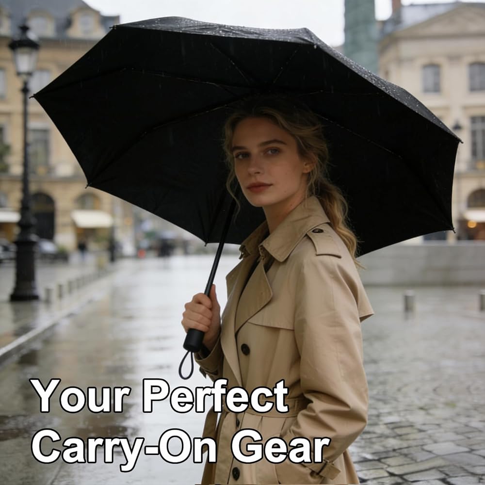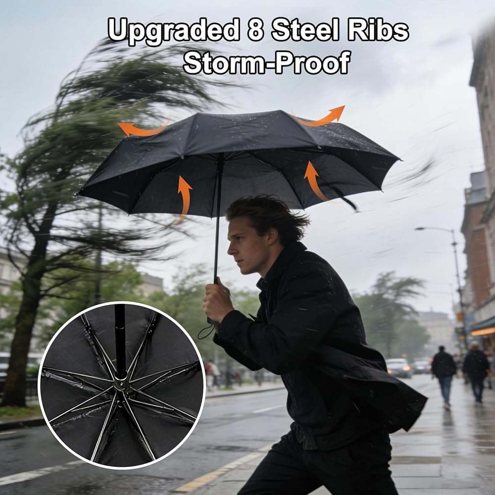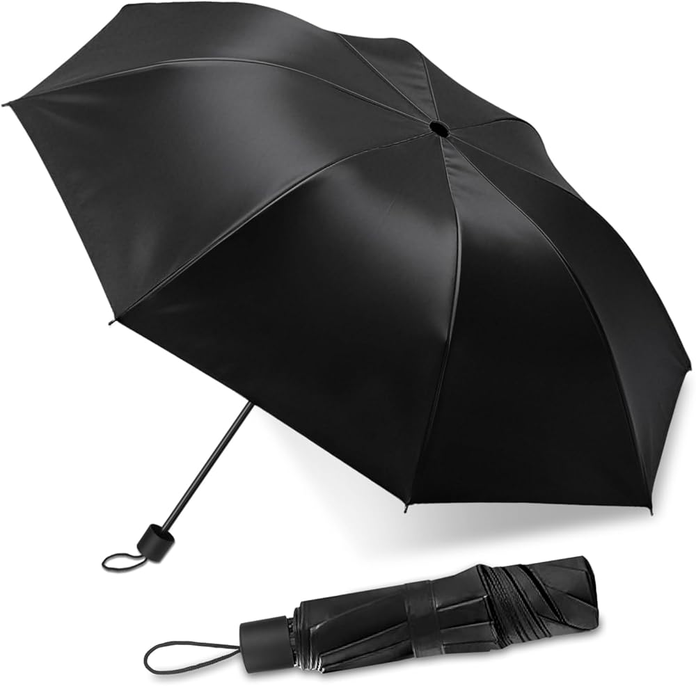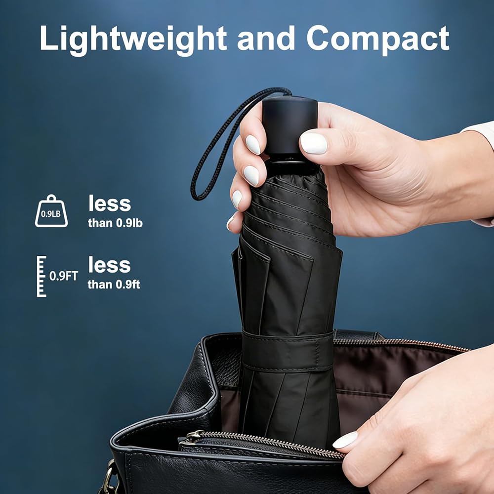 One black windproof travel umbrella in a bag