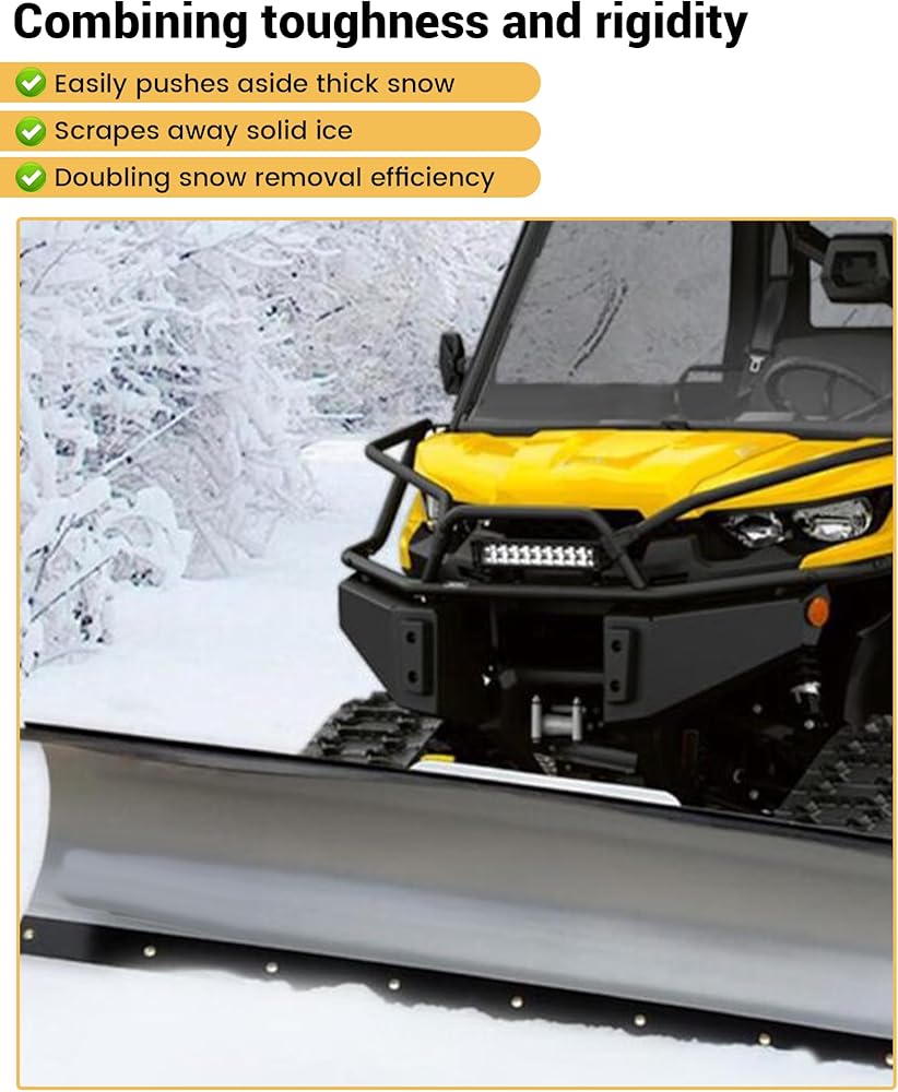 توافق واسع: يبلغ طول حافة قطع محراث الثلج من البولي يوريثين 60 بوصة، وعرض 4 بوصات، وسمك 3/4 بوصة، مما يجعلها متوافقة مع معظم المعدات، ويمكن تركيبها بسهولة على كاسحات الثلج UTV الموجودة، أو دلاء الجرارات، أو شفرات الرافعة الشوكية، أو كاسحات الثلج ATV، مما يوفر لك التكلفة ومساحة التخزين لشراء شفرات منفصلة لمعدات مختلفة.