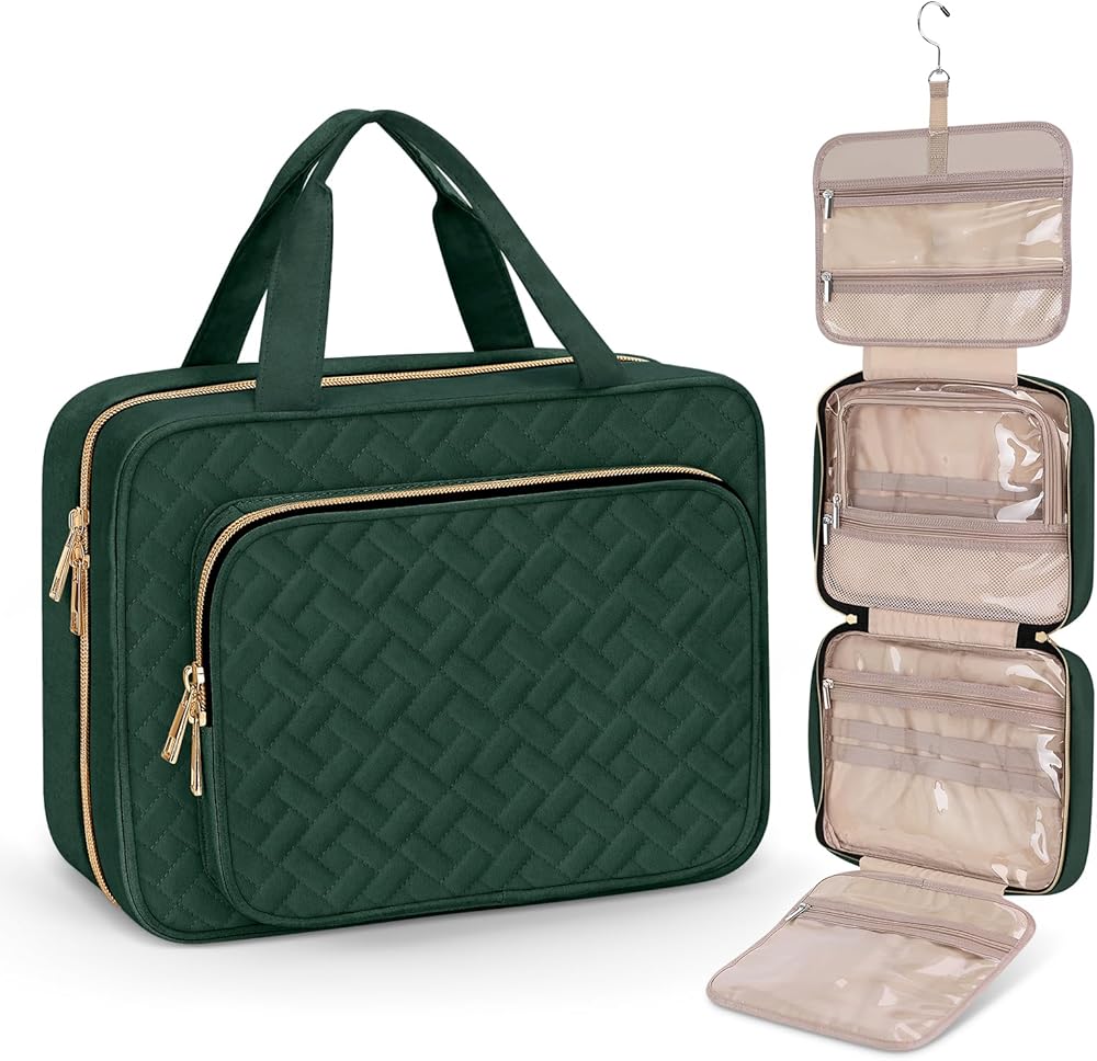 تصميم إنساني: حقيبة السفر الكبيرة لأدوات الزينة مصنوعة من مادة مقاومة للماء، بولي كلوريد الفينيل السميك، وخطاف من الفولاذ المقاوم للصدأ 304، وسحابات مزدوجة وجلد البولي يوريثان الناعم، وهي أنيقة وعملية، وسهلة التنظيف أيضًا. يتيح لك الخطاف بزاوية 360 درجة تعليق الحقيبة على رف المناشف أو غرفة الملابس أو أي مكان تحتاج فيه إلى عرض مستحضرات التجميل ومستحضرات التجميل الخاصة بك. حقيبة أدوات الزينة للسفر ذات التصميم المفتوح على شكل حرف U هي أكثر ملاءمة لك لالتقاط الأشياء.
