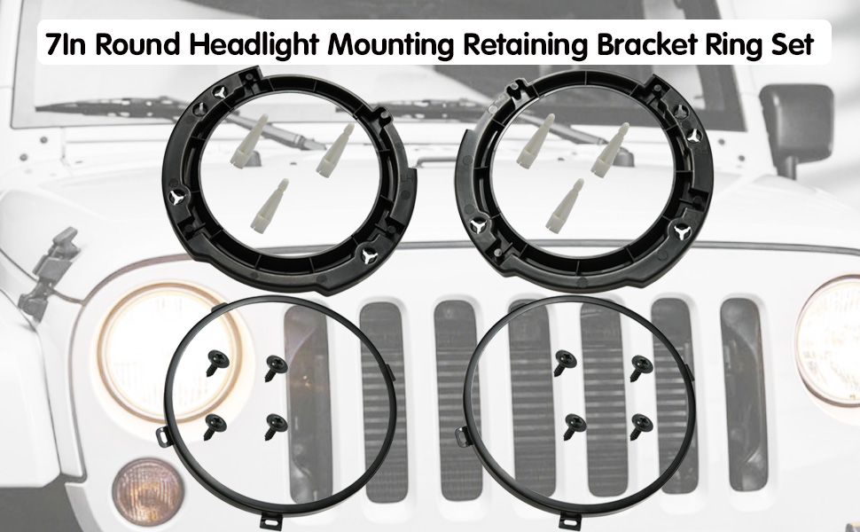 تتكيف دعامة تثبيت المصابيح الأمامية مقاس 7 بوصات مع مجموعة حلقات معدنية للتثبيت على المصابيح الأمامية المستديرة بدقة مع 07-17 Wrangler JK، وتتوافق تمامًا مع المصابيح الأمامية LED أو الهالوجين مقاس 7 بوصات، والتوصيل والتشغيل