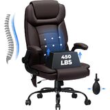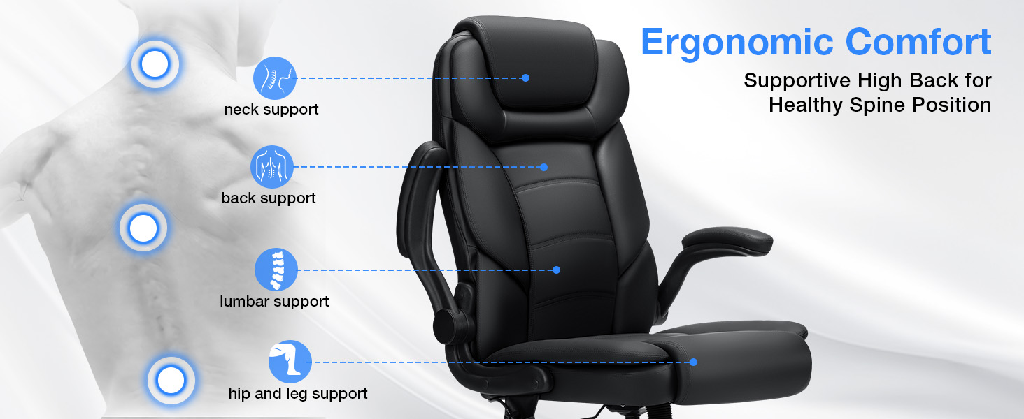 كرسي مكتب تنفيذي من هوفري، كبير وطويل 450 رطل، كرسي مكتب عالي التحمل مع دعم قطني قابل للتعديل، كرسي منزلي من الجلد مريح عالي الظهر مع أذرع قابلة للطي للأشخاص الثقيلين، أسود