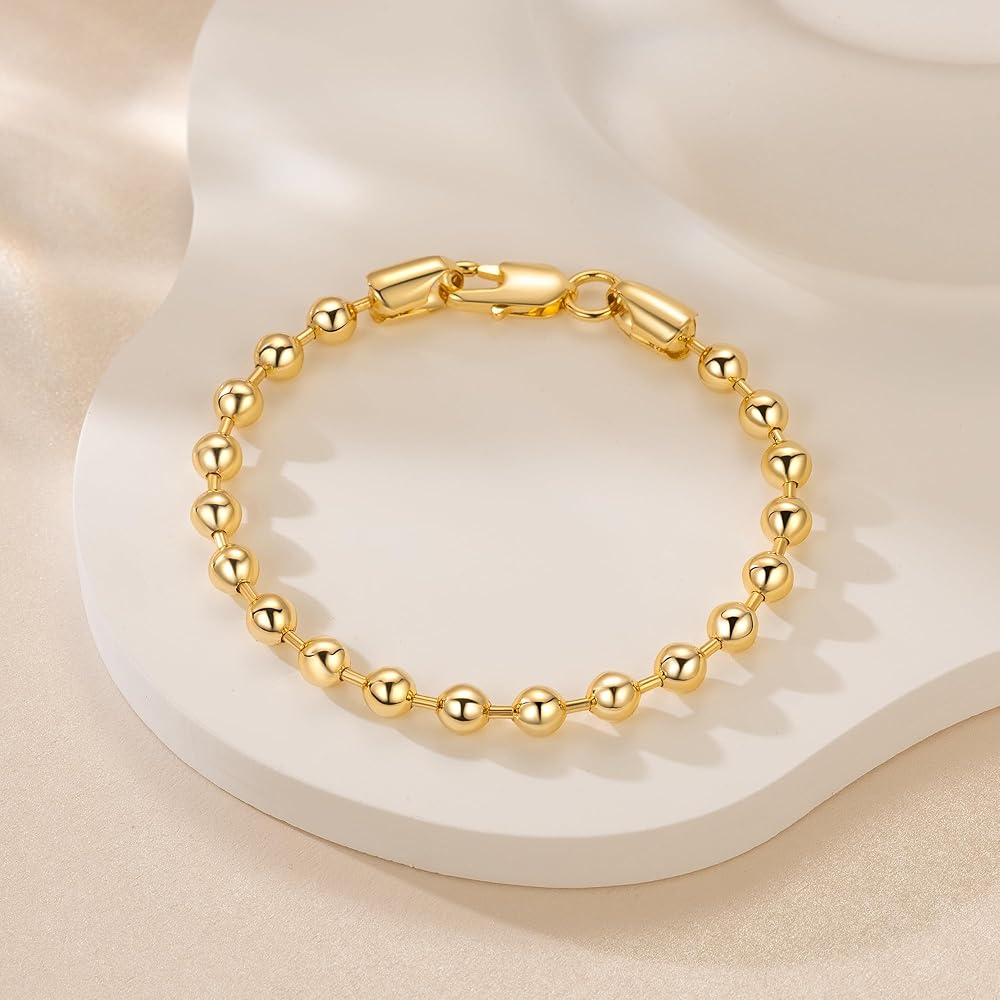 【تصميم سلسلة الخرز】تصميم سلسلة الخرز لأساورنا المطلية بالذهب عيار 14 قيراط للنساء هو مزيج ممتاز من النمط الكلاسيكي والأناقة العصرية. سلاسل الخرز هي واحدة من أفضل أنواع السلاسل التي يمكن استخدامها مع التعويذات الصغيرة الحديثة، مما يسمح لك بتخصيص مجموعة الأساور الذهبية الرائعة الخاصة بك بألعاب ذات معنى. التصميم متعدد الاستخدامات وأنيق.