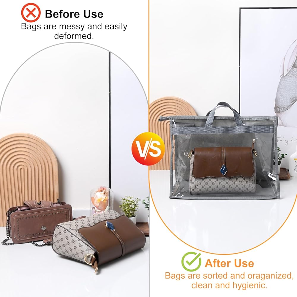 • Clear PVC & Non-Woven Fabric: These purse dust bags made from transparent PVC and non-woven; The clear design lets you see your bag instantly; A clear dust bags for purses ensures complete dust protection while keeping your purse easily identifiable