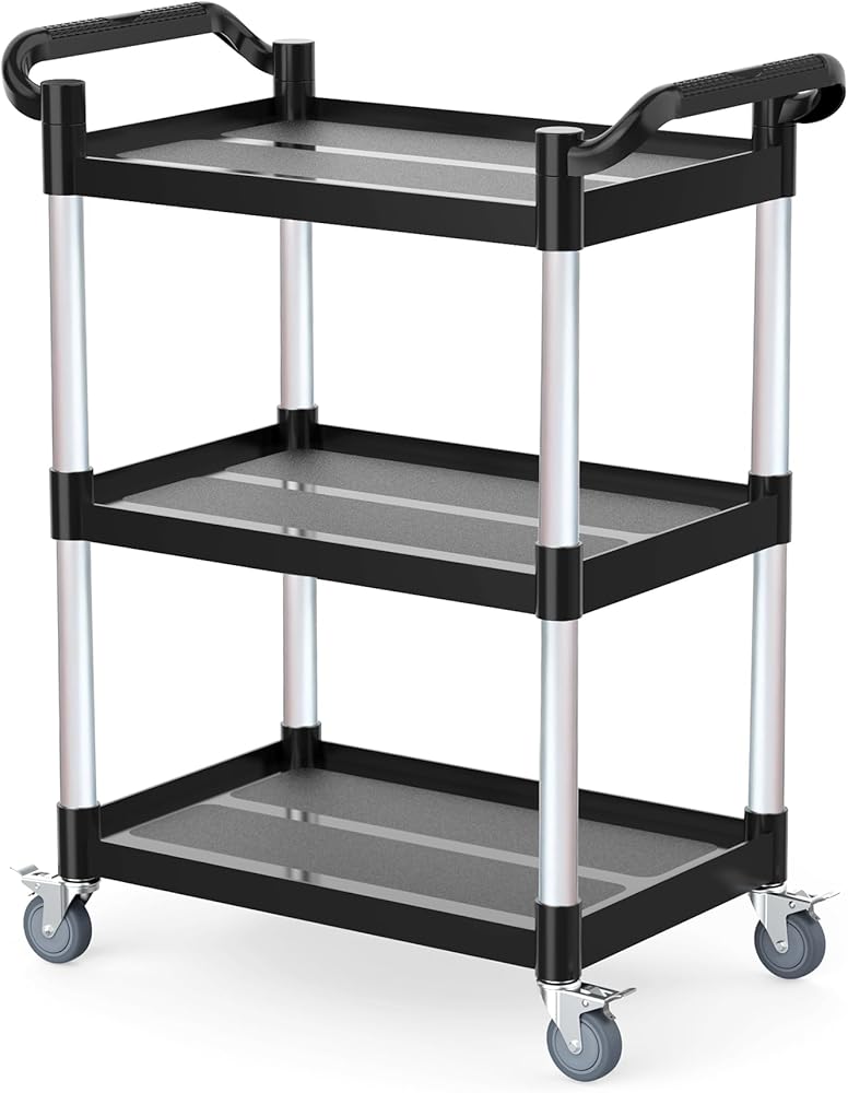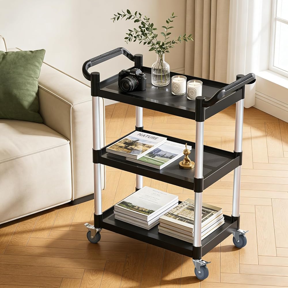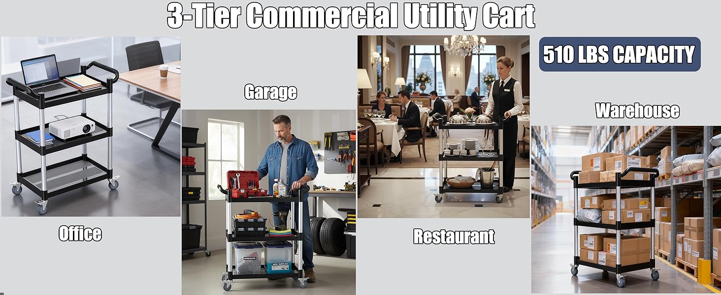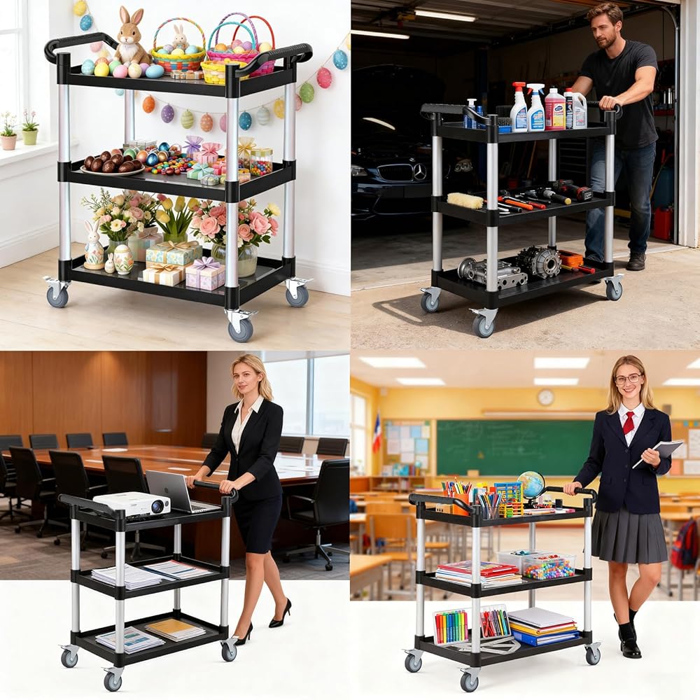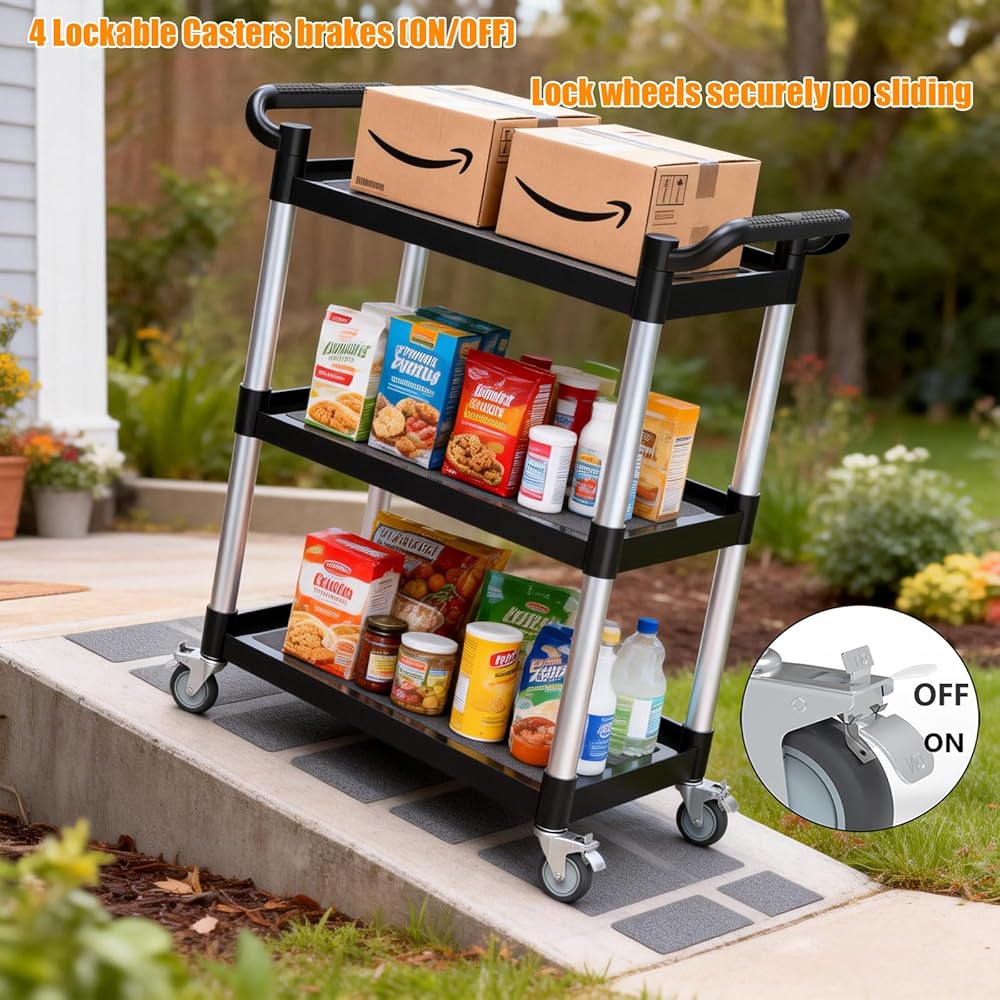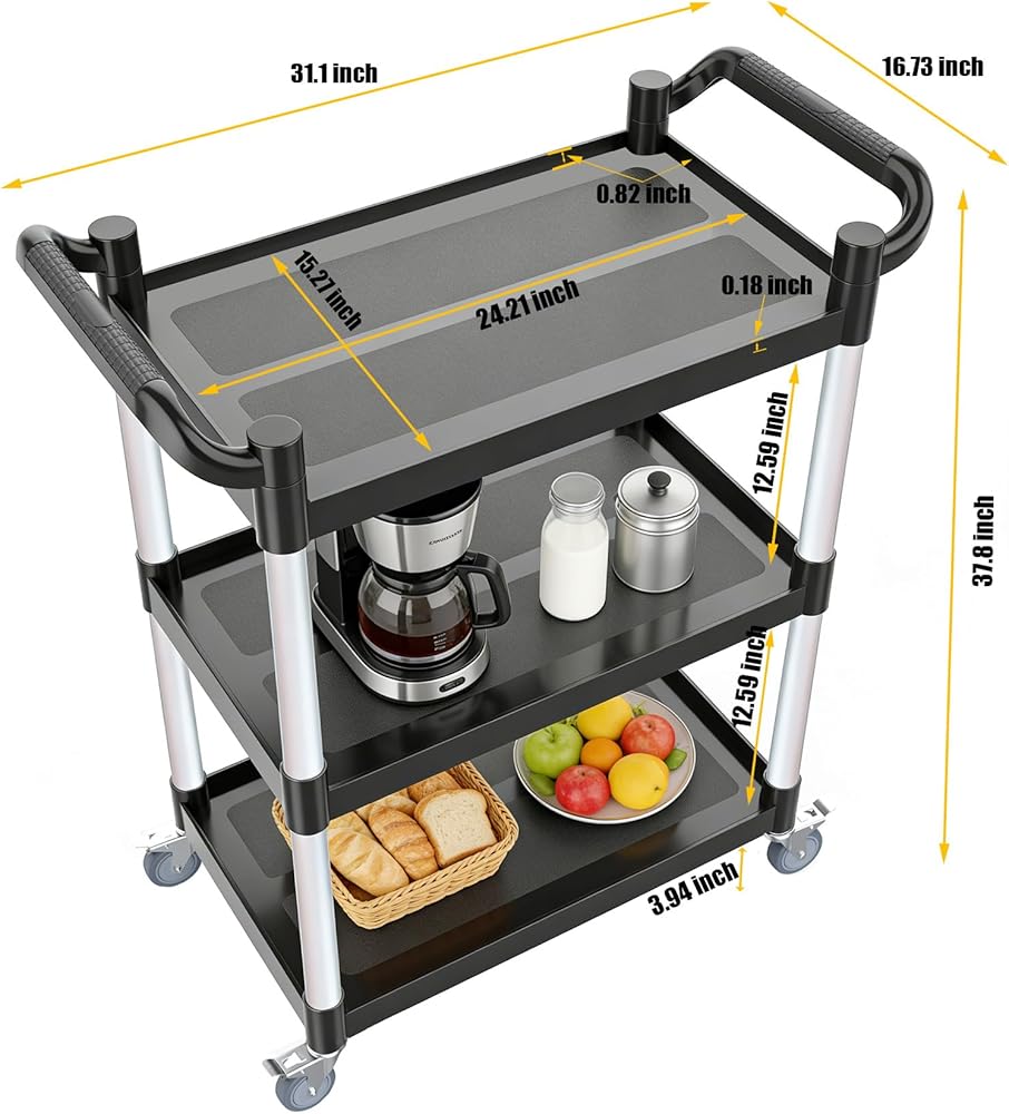 【عربة أدوات 510 رطل من 3 طبقات - حل للتخزين والنقل متعدد المشاهد】 تم تصميم هذه العربة الدوارة المكونة من 3 طبقات للمطابخ والمطاعم والمكاتب والجراجات، مما يزيد من مساحة التخزين مع سهولة الحركة وتوفير الوقت والمساحة والجهد البدني. يمكن أن يدعم ما يصل إلى 510 رطلاً (170 رطلاً لكل طبقة)، مما يجعله مثاليًا لتخزين ونقل العناصر في المستودعات والمكاتب والمطاعم والفنادق والمطابخ والساحات والمزيد. أبعاد سطح العمل الفعالة: 24.2 بوصة طول × 15.3 بوصة عرض × 12.4 بوصة ارتفاع.