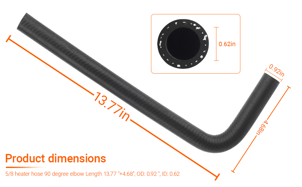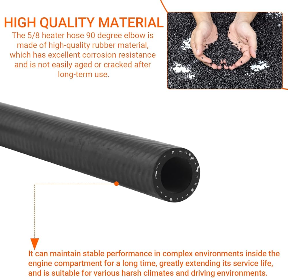 مواد عالية الجودة: خرطوم السخان 5/8 بمرفق 90 درجة مصنوع من مادة مطاطية عالية الجودة، والتي تتميز بمقاومة ممتازة للتآكل ولا يمكن أن تتقدم في السن أو تتشقق بسهولة بعد الاستخدام طويل الأمد. يمكنه الحفاظ على أداء مستقر في البيئات المعقدة داخل حجرة المحرك لفترة طويلة، مما يزيد من عمر الخدمة بشكل كبير، وهو مناسب لمختلف المناخات القاسية وبيئات القيادة.