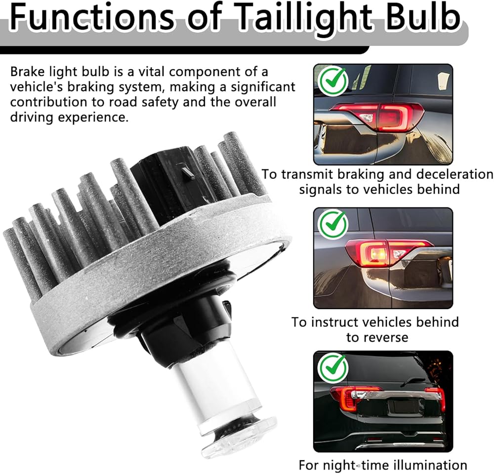 13582912 لمبة ضوء الفرامل والذيل متوافقة مع GMC Acadia 2013-2016 Acadia SLE Limited 2017 استبدال لمبة ضوء الفرامل الخلفية # 19433735 لمبة أضواء الذيل