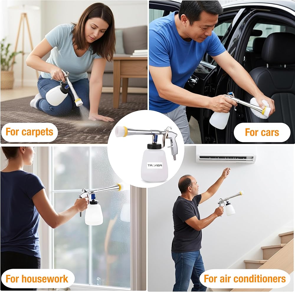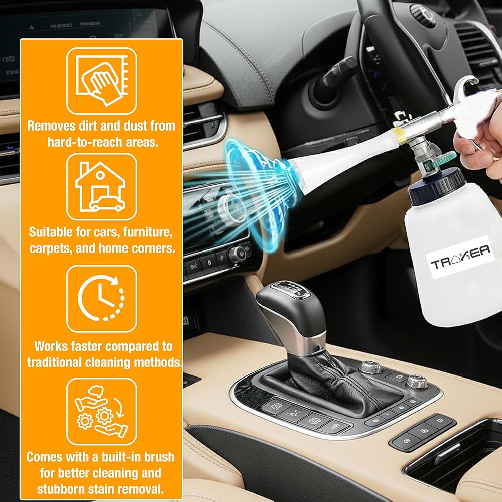 • تنظيف متعدد الاستخدامات: يعتبر مسدس التنظيف تورنادو رائعًا لتنظيف الأجزاء الداخلية للسيارة مثل لوحة القيادة والمقاعد وحاملات الأكواب، بالإضافة إلى الأجزاء الخارجية مثل الإطارات. إنه رائع لمعالجة البقع والحفاظ على نظافة سيارتك، سواء للصيانة الروتينية أو التنظيف العميق.