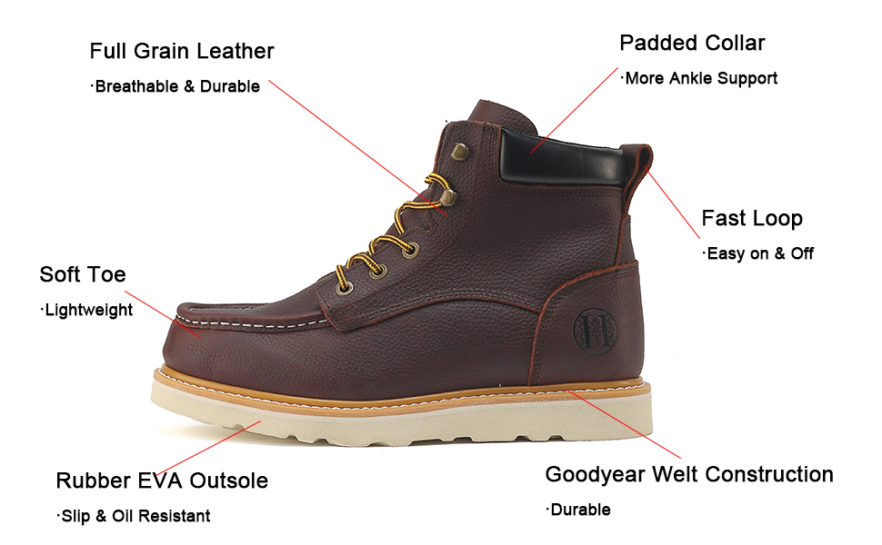 • 【تصميم ناعم عند الأصابع】: يوفر التصميم ذو الأصابع الناعمة الحماية مع الحفاظ على ملاءمة مرنة ومريحة. على عكس خيارات أصابع القدم الفولاذية، يوفر هذا التصميم وزنًا أخف وحرية أكبر في الحركة، مما يجعله مناسبًا لبيئات العمل الصعبة والاستخدام غير الرسمي دون التنازل عن السلامة.
