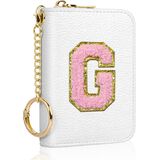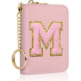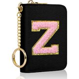 حامل بطاقة الائتمان الأولي، محفظة صغيرة لبطاقات RFID للنساء، حافظة منظم محفظة جلدية بجيب نحيف مع سحاب وسلسلة مفاتيح، وردي اللون الأولي F in Kuwait