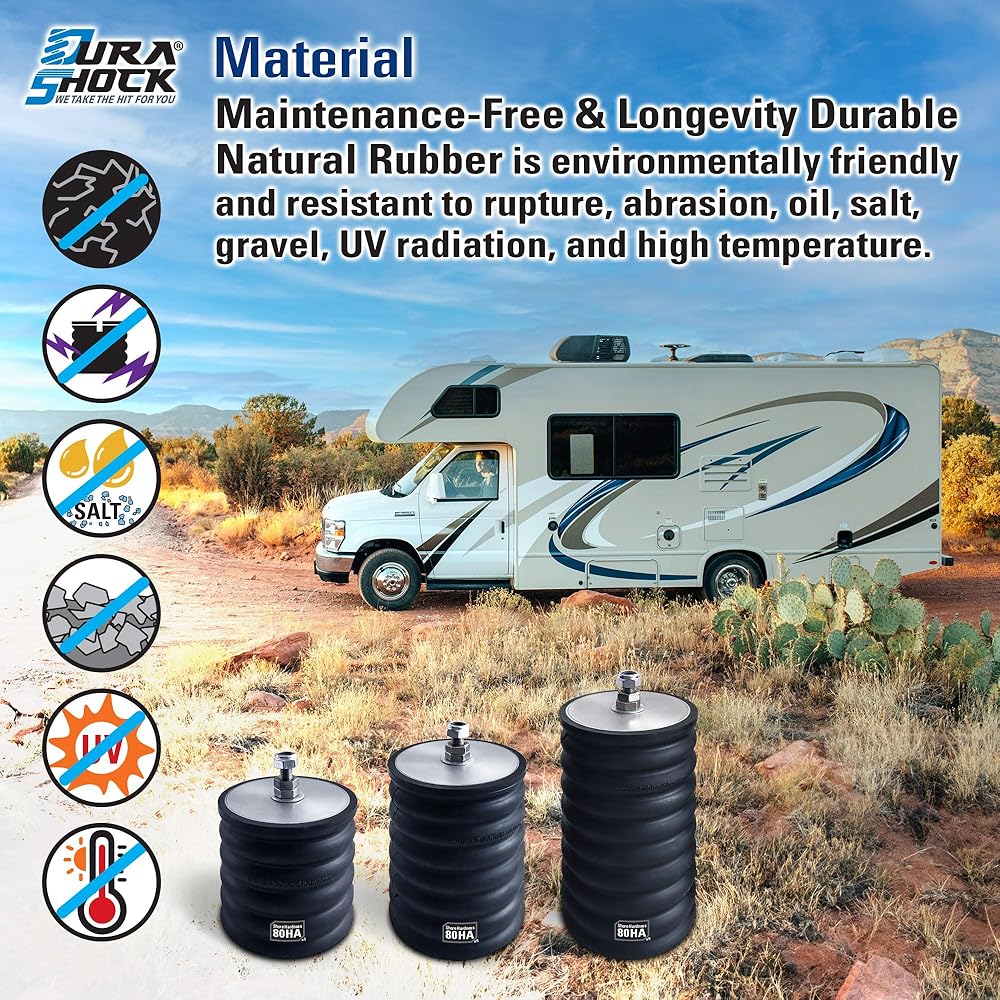 【Product Size & Load Weight】: Pair UB1223S 7"H X 4"D 9000 lbs./pair Hardness 80HA. Designed for Constant Heavy Loading Truck or RV.
