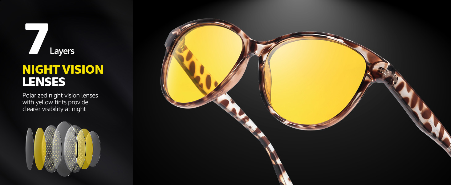 نظارات القيادة الليلية: العدسات المستقطبة ذات اللون الأصفر تقلل بشكل فعال من وهج القيادة وتقلل من إجهاد العين؛ أنها تضمن السلامة المثلى أثناء الرحلات الليلية. قل وداعًا للرؤية الضعيفة ومرحبًا بتجربة قيادة أكثر أمانًا مع نظارات الرؤية الليلية Myiaur.