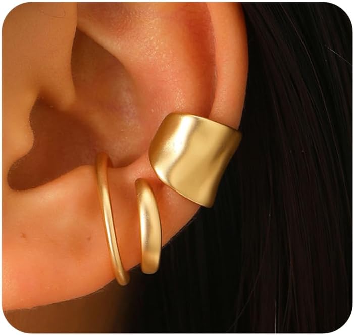 Unique Design: Get that cool cartilage look without any piercings with this 2pcs chunky ear cuff set, featuring simple non-piercing designs that clip right on. These trendy geometrical earrings wrap around your ear for a modern, edgy vibe, making them an easy way to add some standout style to your everyday jewelry lineup