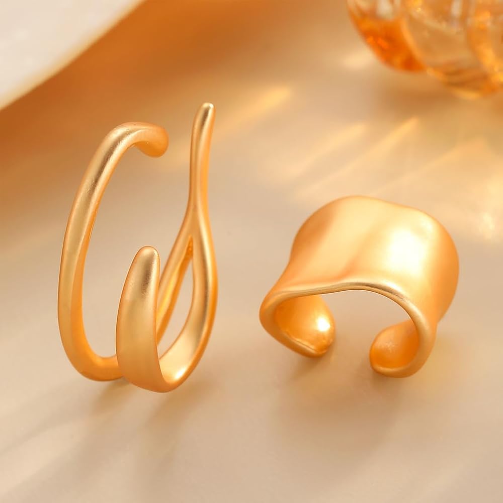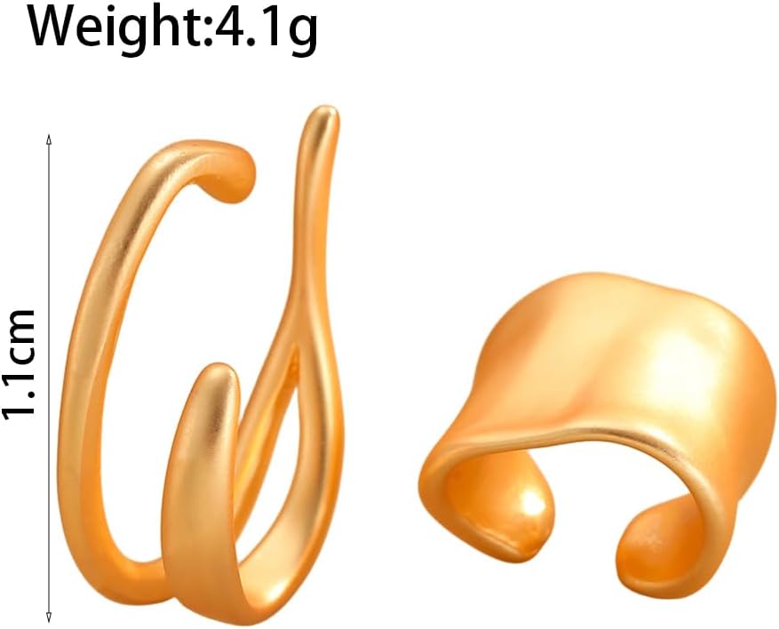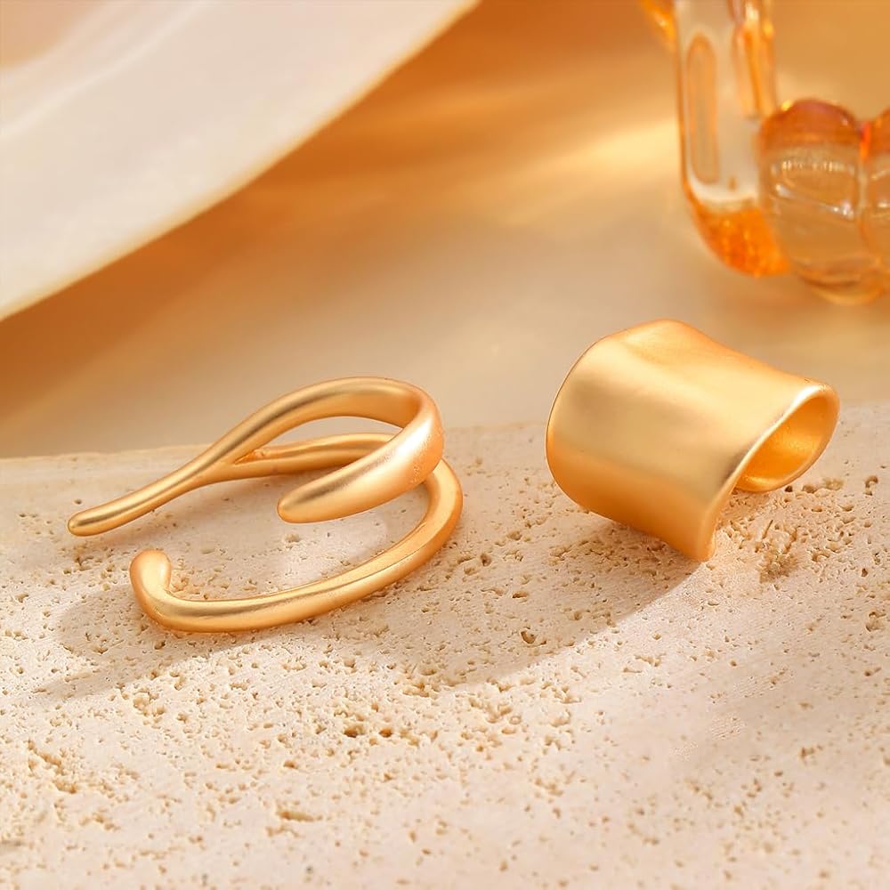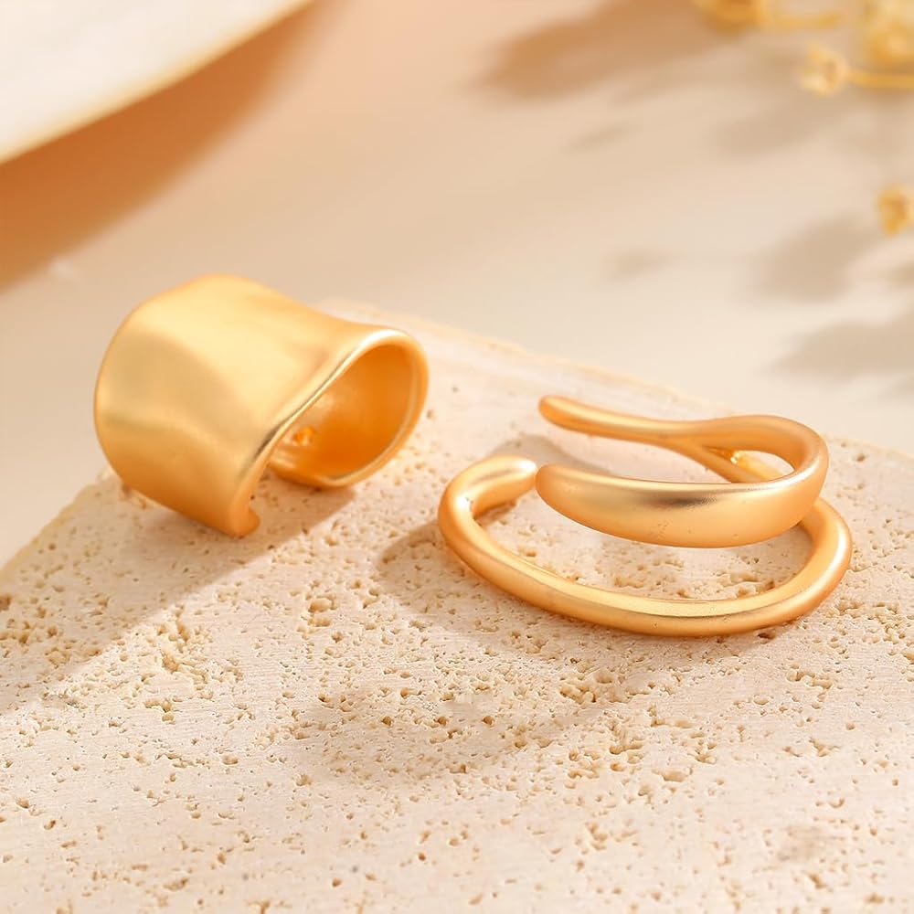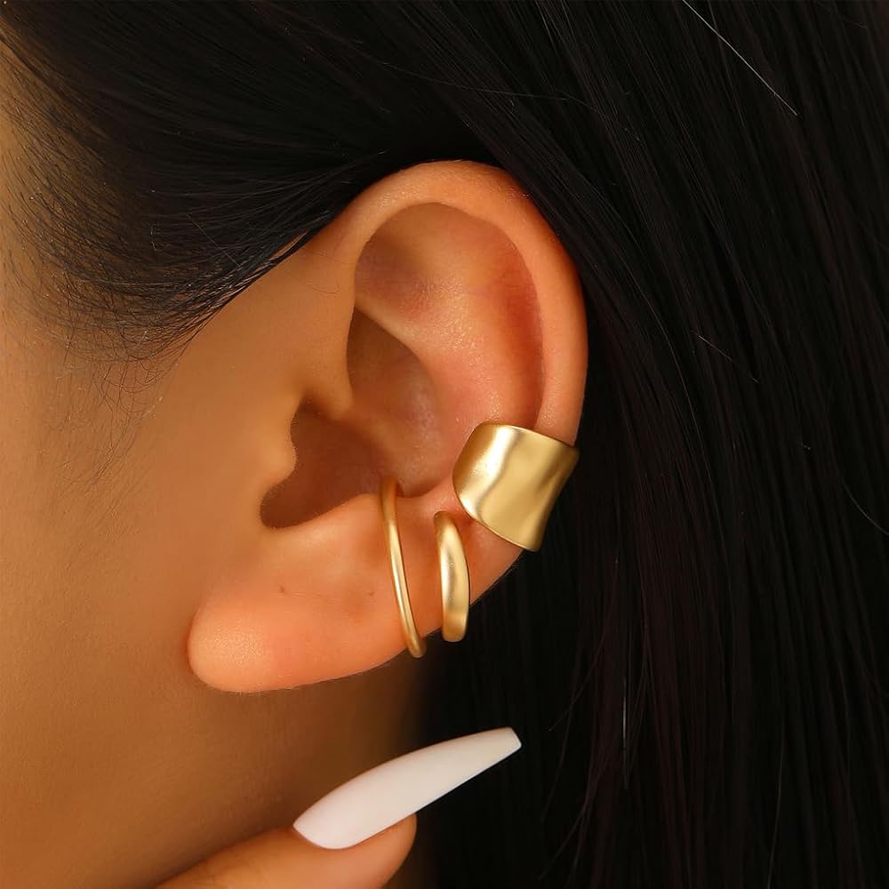 Features set of chunky ear cuff earrings with simple non-piercing geometrical designs for an edgy, modern look. Versatile for everyday wear, office outfits, or night-out styles, adding a cool layered effect without piercings
