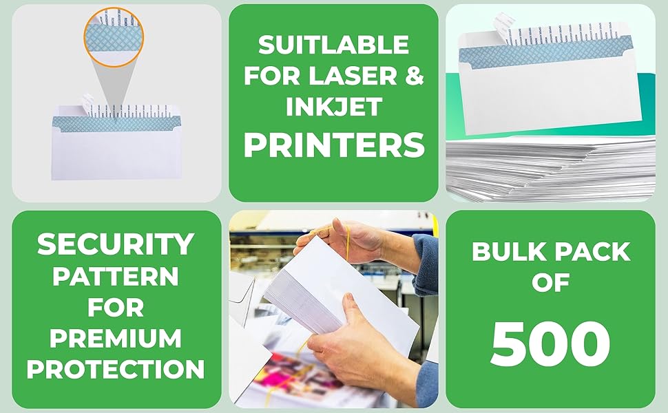 ختم آمن - تتميز أغلفة Peal and Seal بشريط ذاتي اللصق للمساعدة في الحفاظ على محتوياتك آمنة ومأمونة. غطاء قابل للتقشير والختم: لا يتطلب رطوبة. قم بتقشير الشريط وطي الغطاء، ثم اضغط للحصول على إغلاق سريع وآمن، إغلاق سريع وبسيط.