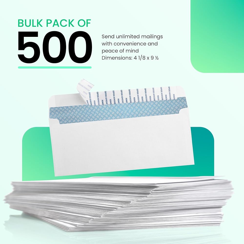 الحجم القياسي - أرسل البريد اليومي بسهولة. يبلغ مقاس هذه الأظرف رقم 10 4-1/8 بوصة × 9-1/2 بوصة ويمكنها حمل مستندات مطوية بحجم الحروف