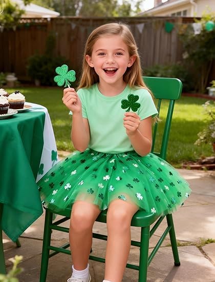 St. Patrick's Day Tutu for Girls St. Patty's Day Tulle Skirt Little Girl Green Shamrock Saint Patrick's Day Dress up Accessories