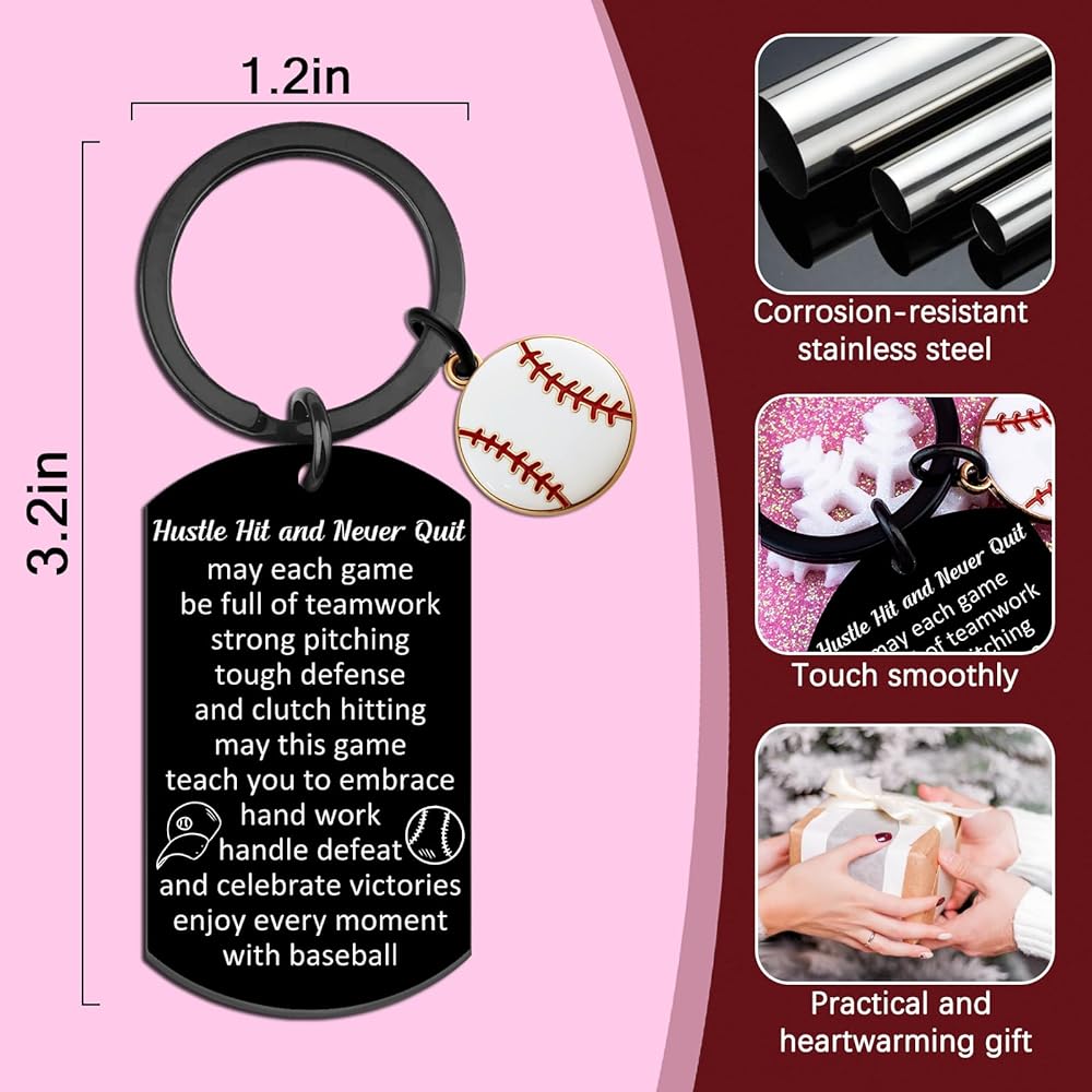 Baseball Keychain/Baseball Accessories:Baseball keychains for boys,baseball accessories for boys.The baseball keychain carries the spirit of baseball:hustle,hit,and never quit.More than an baseball accessory,it's a daily reminder to embrace every moment on the field—the challenges, the teamwork and the growth.
