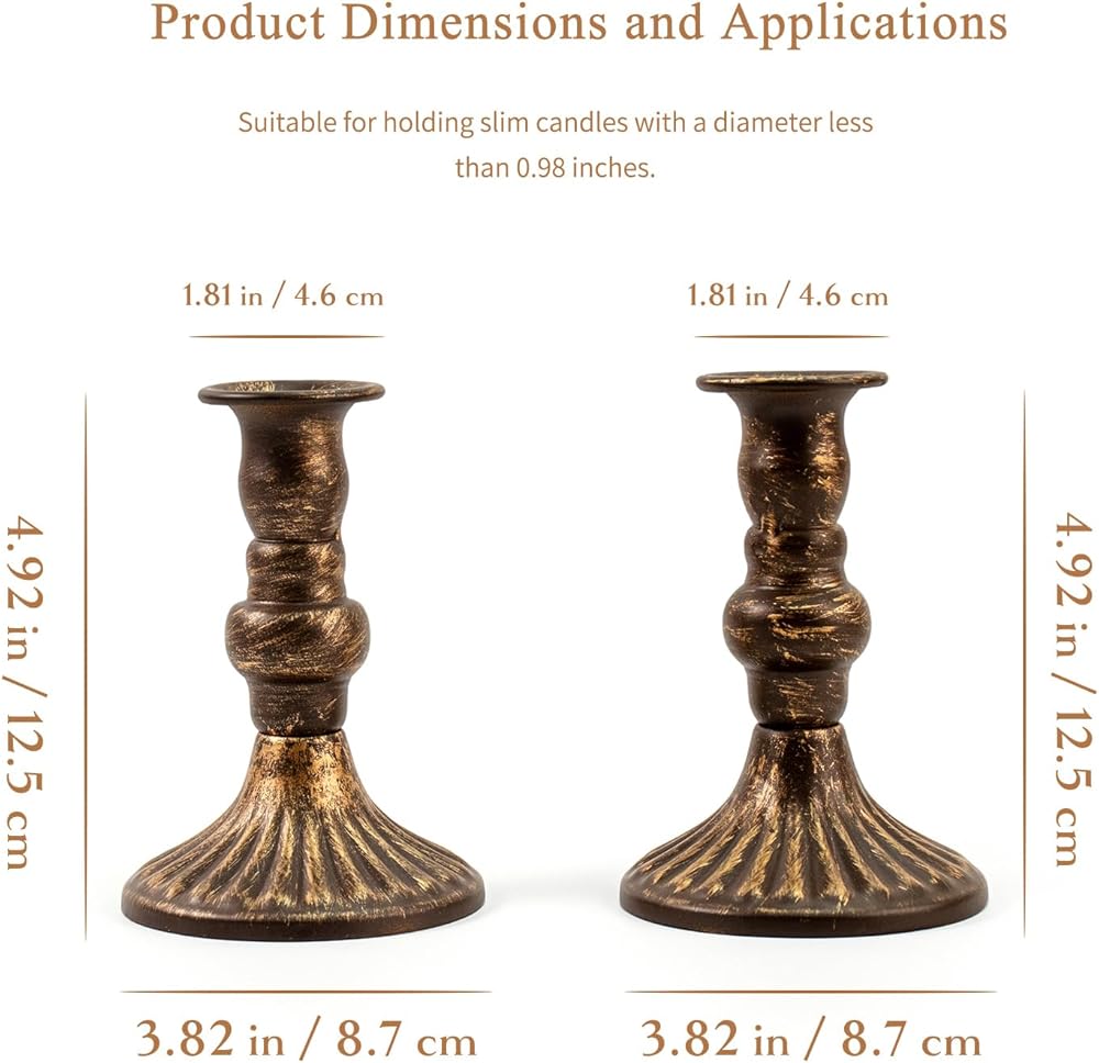 Sturdy Metal Construction and Aging-resistant: Crafted from sturdy metal, this candlestick stands 4.92 inches (approx. 12.5 cm) tall. The broad 3.2-inch (approx. 8.1 cm) diameter base ensures stable placement, while the 1.81-inch (approx. 4.6 cm) top opening is designed to perfectly fit most standard pillar candles and securely hold taper candles, achieving an ideal balance of aesthetics and safety.