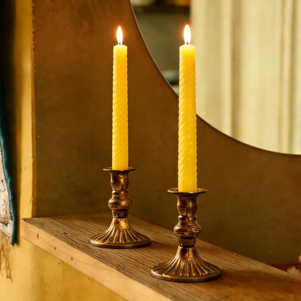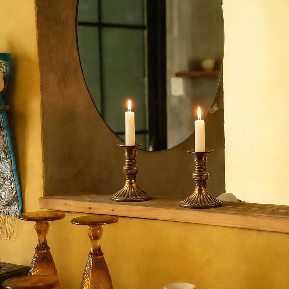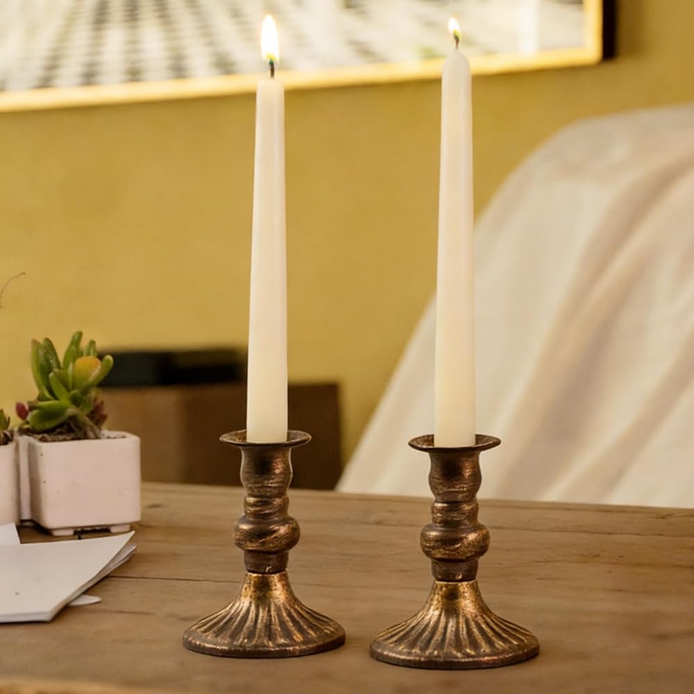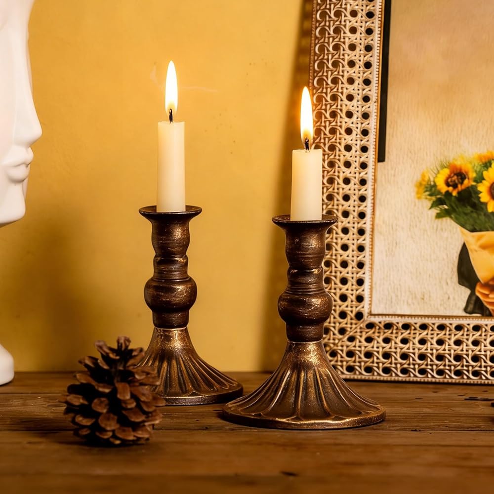 Versatile Centerpiece for Multiple Settings: This set of 2 candlesticks allows you to create an eye-catching focal point, whether placed side-by-side or staggered. Perfect as a table centerpiece, fireplace mantle accent, or for enhancing living room sideboards, dining room buffets, windowsills, and bedroom dressers.