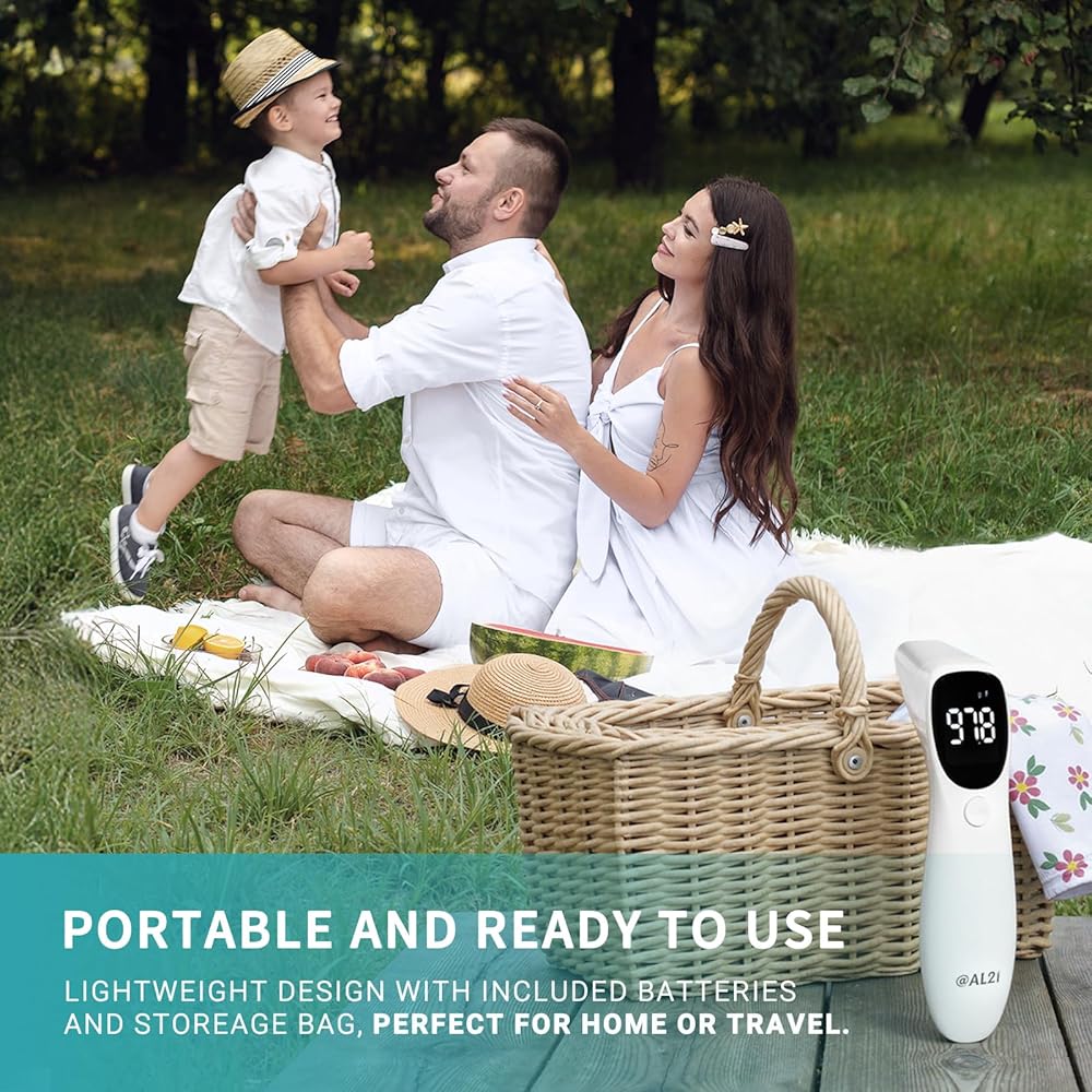 • مقياس حرارة سريع ودقيق مزدوج الوضع: يتميز مقياس الحرارة بالأشعة تحت الحمراء @AL21 بوضعي الجبين والأذن، ويمكن التبديل بسهولة مع إزالة الغطاء البسيط. مصمم للحصول على قراءات سريعة وموثوقة، فهو يضمن الدقة لجميع الأعمار - الرضع والأطفال والبالغين.