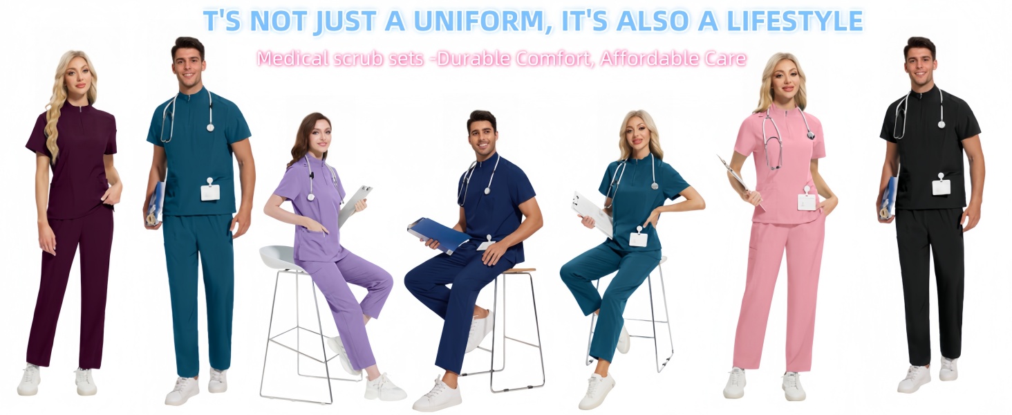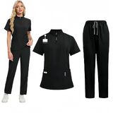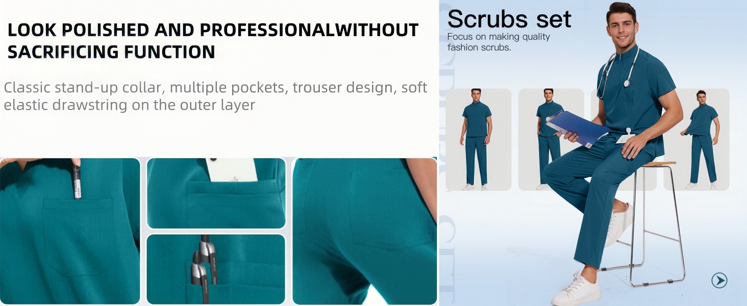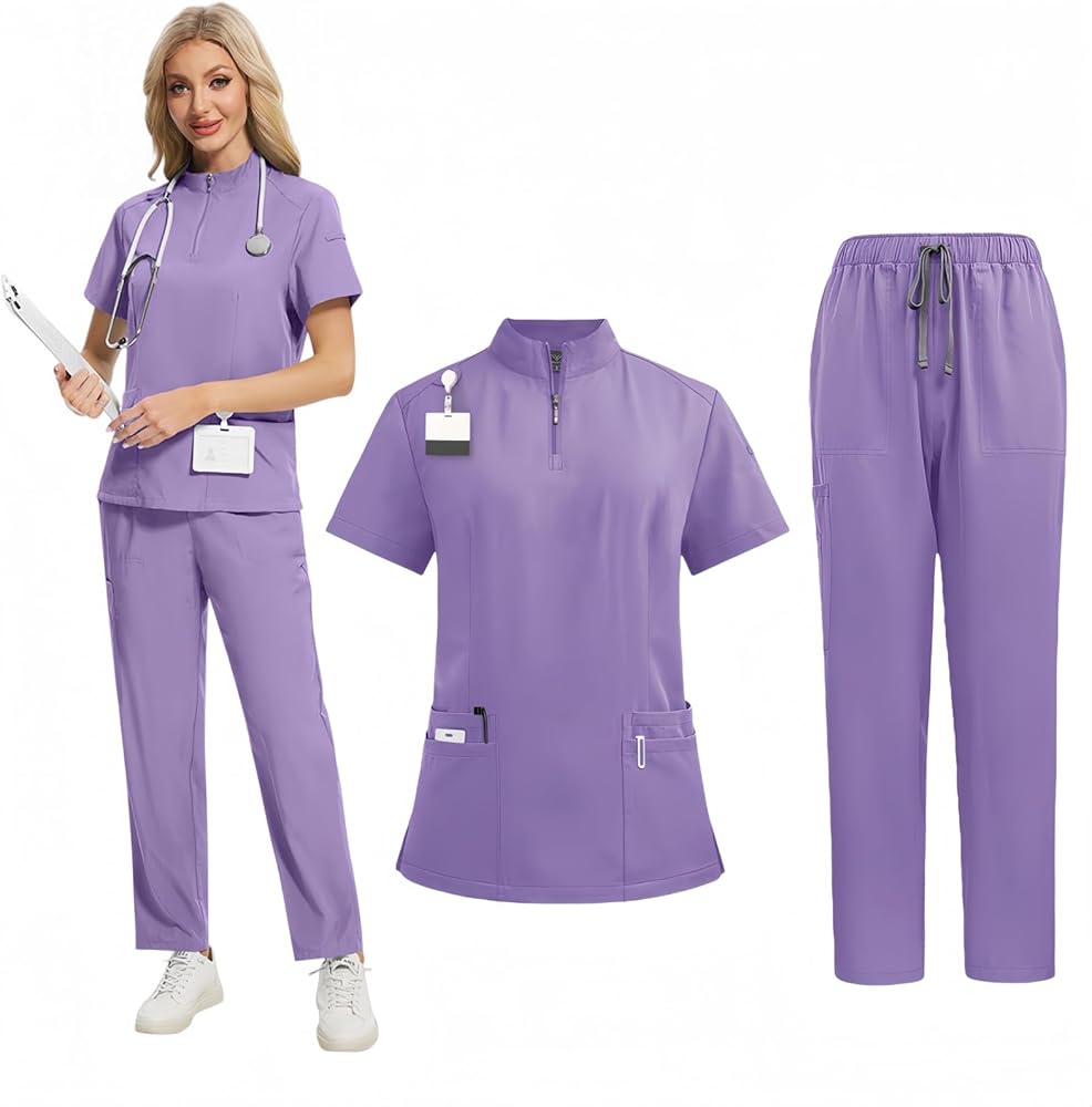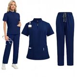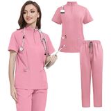 【Multi-pocket design】: The stand-up collar zipper top combines modern style with practicality.Our medical uniform set is equipped with multiple pockets,providing ample storage space for tools and necessities,allowing you to be organized and ready for various situations.Safely store medical tools,mobile phones or necessities without affecting activities.