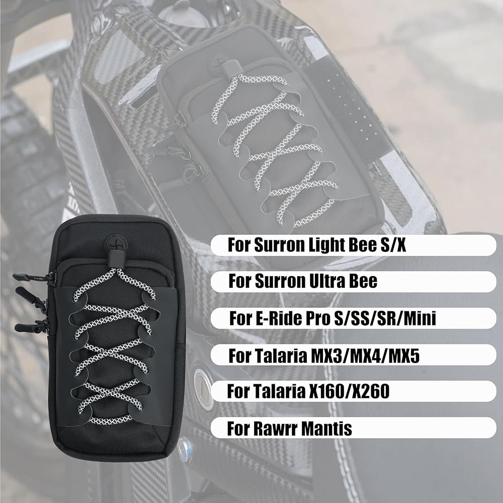 2 حزمة من حقيبة إطار الدراجة الكهربائية الترابية، حقيبة غطاء أمامي للدراجة النارية متوافقة مع Surron Light Bee S/X، Tutti Soleil 01، Yozma IN 10، E-Ride Pro SR/S/SS، Talaria MX3/MX4/MX5 ملحقات الدراجة الإلكترونية (أسود)