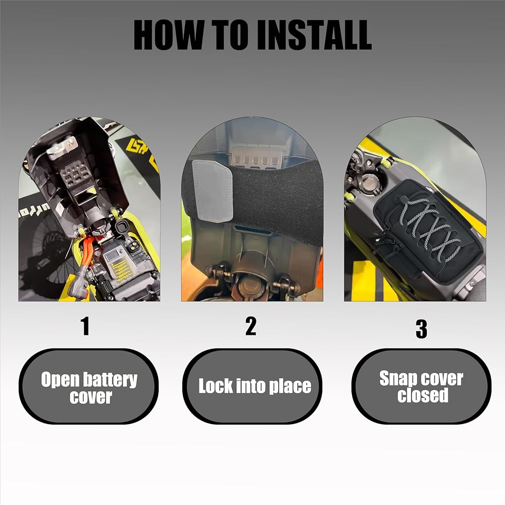 تركيب سريع وآمن: يتم تركيبه على غطاء البطارية - افتح الغطاء، ولف أشرطة الفيلكرو القوية، وستكون جاهزًا للركوب. يثبت بقوة على الأراضي الوعرة وبسرعة