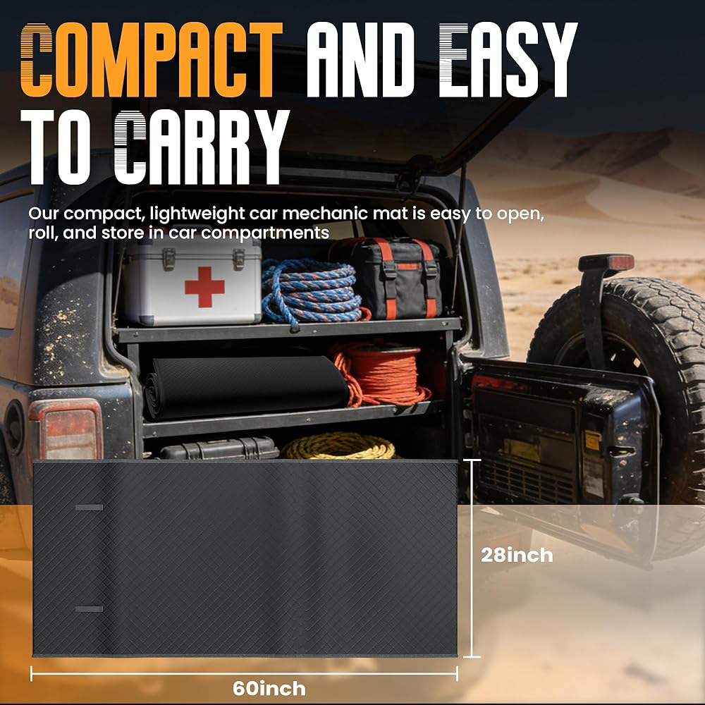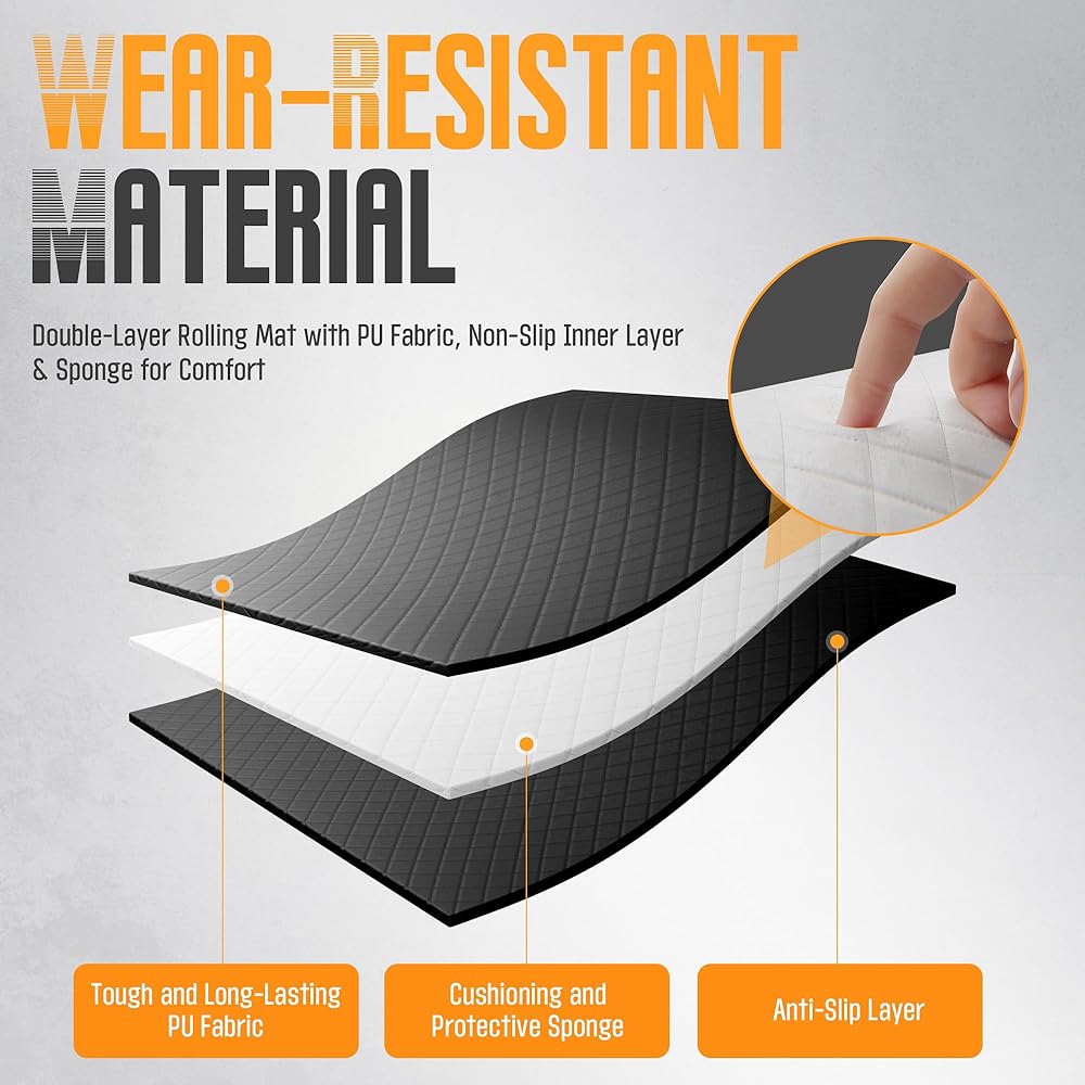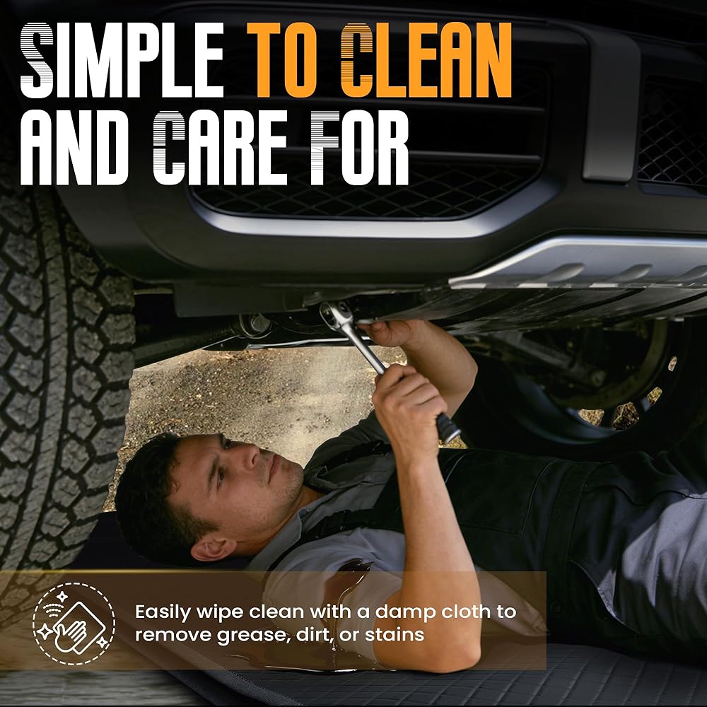سطح مقاوم للزيت: تستخدم السجادة السحرية مادة البولي يوريثان القوية التي تقاوم الشحوم الزيتية والتآكل اليومي. يمكن تنظيفه بسهولة بعد الاستخدام ويظل موثوقًا به لمهام صيانة السيارات المتكررة.